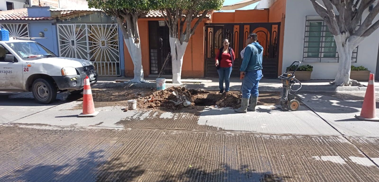 Cuadrillas de INTERAPAS atendieron una fuga de agua potable en la calle Magnolia de la colonia Jardines del Sur, como parte de las acciones permanentes para evitar el desperdicio y mejorar el servicio.