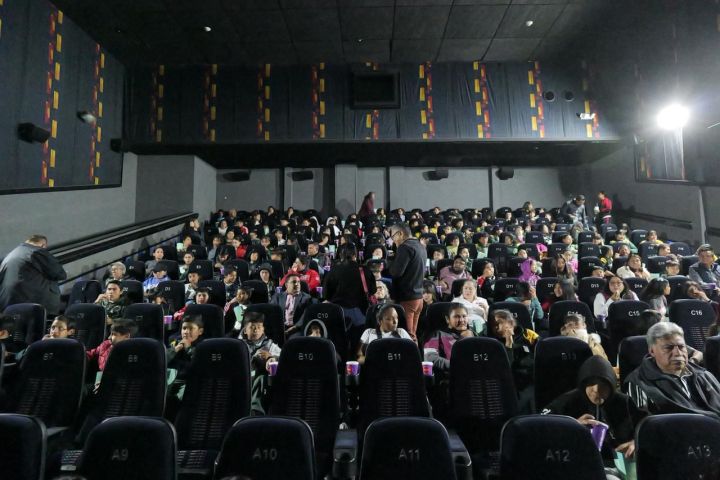 La actividad se realizó en Cinépolis Plaza Tangamanga, donde las y los menores disfrutaron de una mañana de convivencia, juegos, golosinas y una función cinematográfica como parte de la iniciativa cultural “Conoce y Disfruta del Cine”, que busca democratizar el acceso al entretenimiento y la cultura.