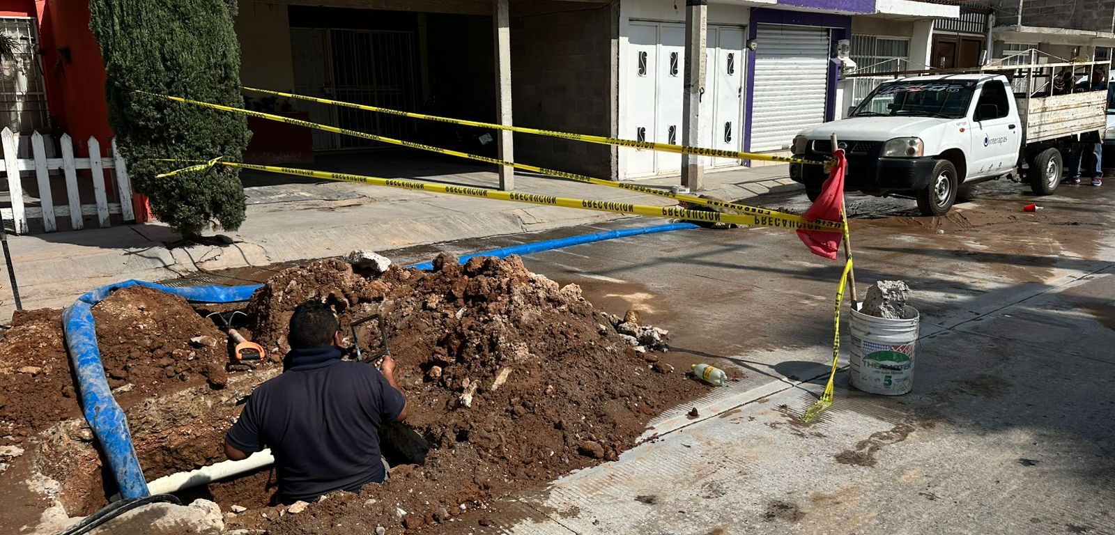 Actualmente, cuadrillas del área de redes continúan con la reparación para evitar el desperdicio de agua y proteger la infraestructura hidráulica.