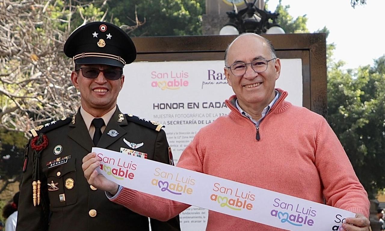 El Alcalde reconoció el trabajo diario de los elementos destacados en San Luis Capital y señaló que la exposición conmemorativa representa una oportunidad para que la población se acerque y valore a una de las instituciones más importantes del país: “Desde la tierra de Bocanegra, donde se escribió el Himno Nacional, desde la tierra de Francisco Eppens, diseñador del Escudo Nacional, desde el lugar que pisaron Benito Juárez y Francisco I. Madero, reconocemos nuevamente al Ejército Mexicano”, manifestó.