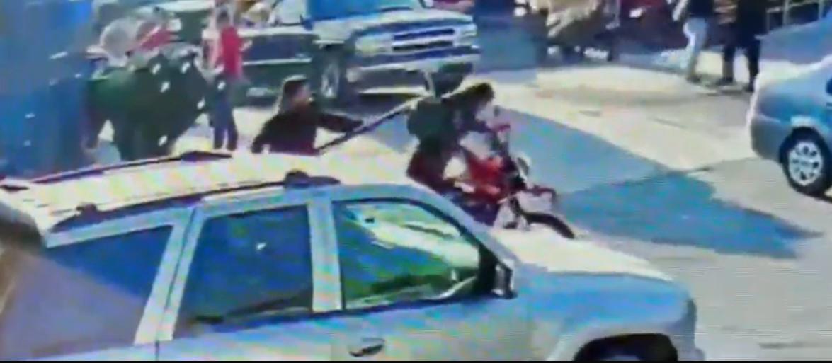 En un acto cobarde, sin razón aparente y frente a decenas de personas, uno de los llamados “diableros” agredió brutalmente a un motociclista utilizando su propio diablo como arma.