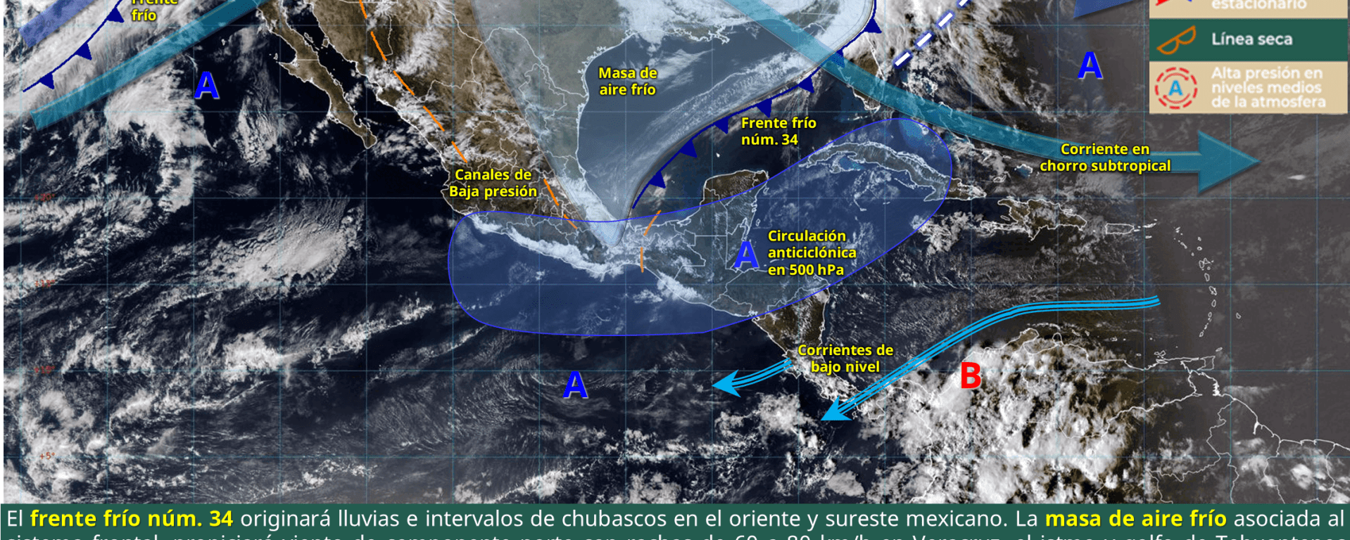 Lluvias aisladas (0.1 a 5 mm): Baja California Sur, Michoacán, Guerrero, Estado de México, Ciudad de México, Tlaxcala y Tabasco.