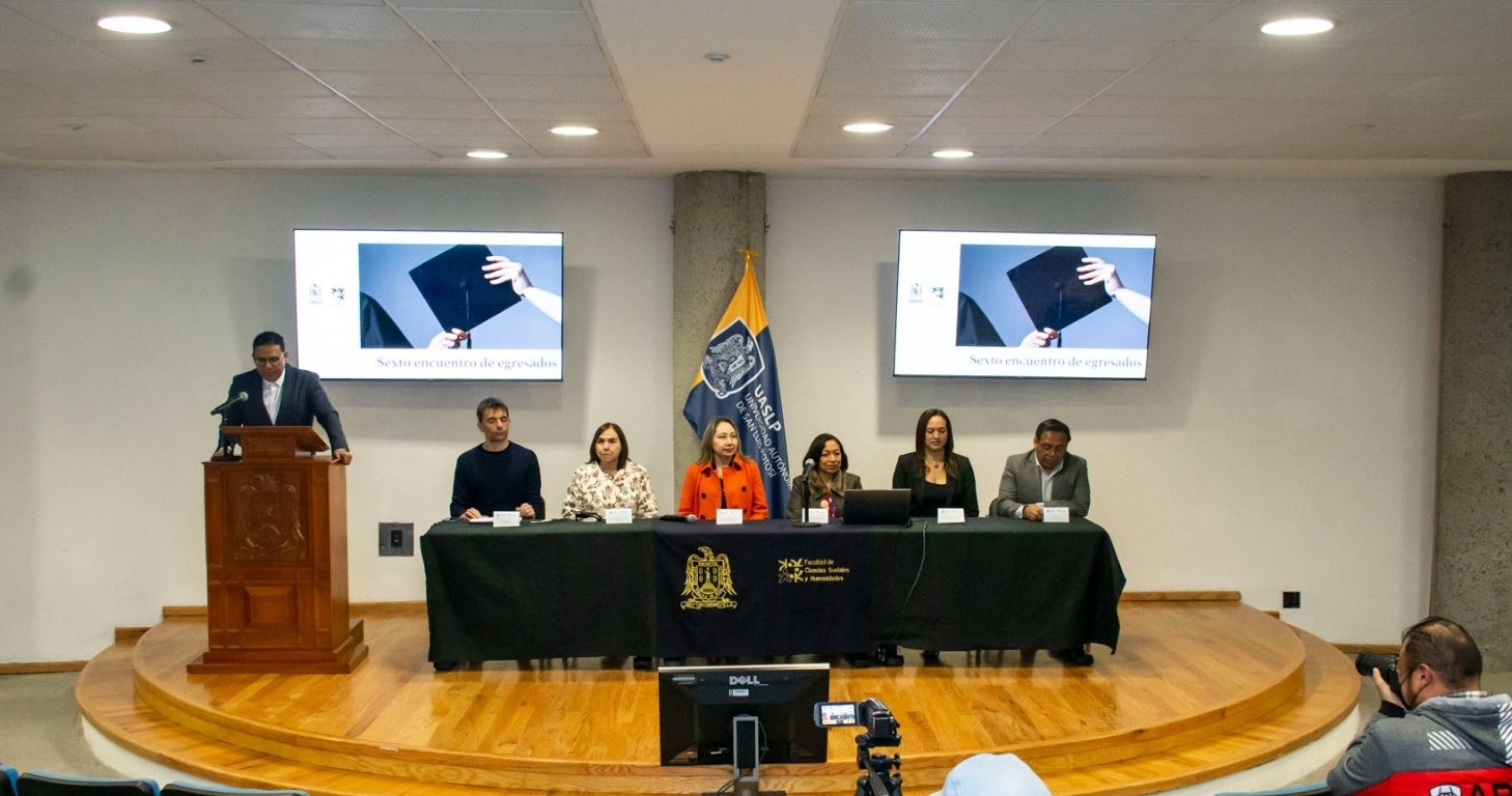 Este jueves 26 de febrero, la Facultad de Ciencias Sociales y Humanidades de la Universidad Autónoma de San Luis Potosí (UASLP) inició las actividades del Sexto Encuentro de Egresados, que concluirá el viernes 27. Durante dos jornadas, estudiantes y egresados de las seis licenciaturas participan en ponencias, conferencias magistrales, mesas de discusión y en la presentación de resultados de encuestas de seguimiento.