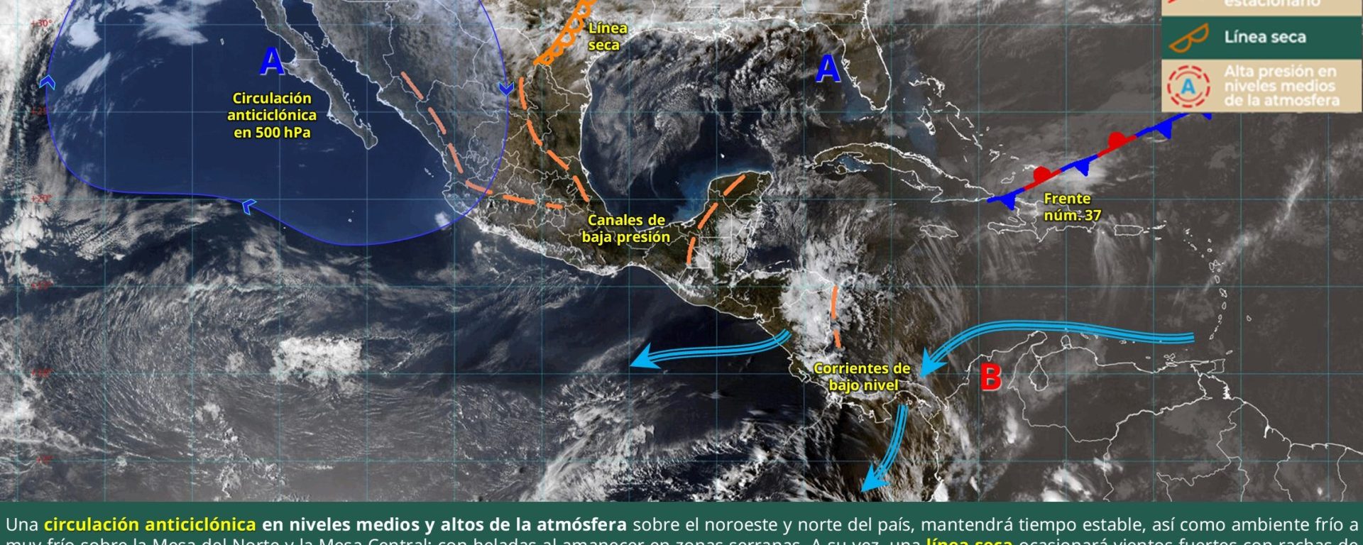 Viento de 20 a 30 km/h con rachas de 40 a 60 km/h: golfo de California, Baja California, Baja California Sur y Sonora (costa); con posibles tolvaneras: Chihuahua, Coahuila y Nuevo León.