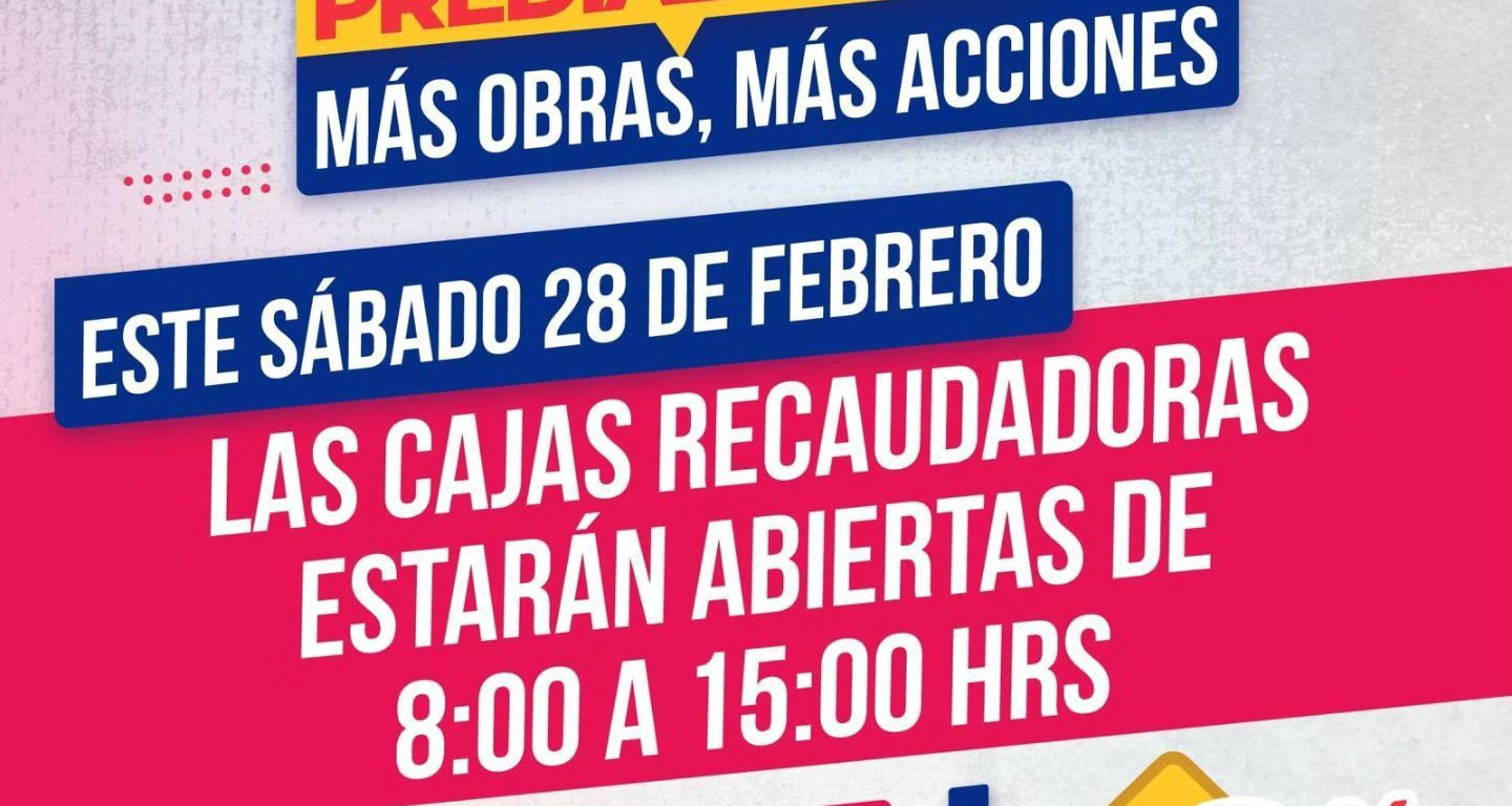 El Gobierno de la Capital informó que este sábado 28 de febrero las cajas recaudadoras municipales brindarán atención en horario de 8:00 a 15:00 horas, con el objetivo de que la ciudadanía aproveche el último día del 10 por ciento de descuento en el pago del impuesto predial.