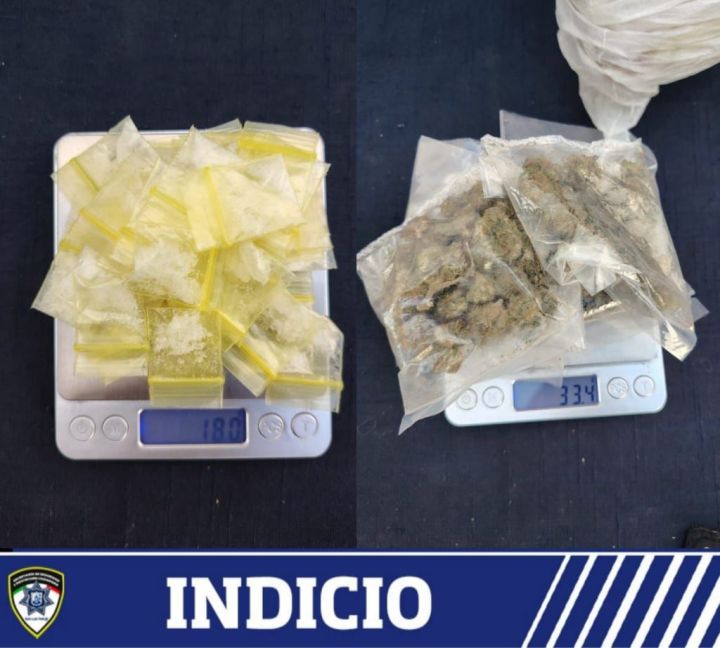 En esta acción, se logró asegurar a Omar «N» de 49 años, quien en una revisión preventiva de seguridad fue encontrado en posesión de 40 bolsas con una sustancia blanca con características a la droga conocida como cristal, con un peso aproximado de 18 gramos, además de cinco bolsas que contenían hierba seca verde similar a la marihuana con un peso aproximado de 33.4 gramos.