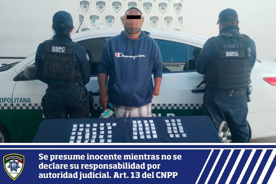 Ante el probable hecho constitutivo de delitos contra la salud, se procedió con la detención de Julián Eduardo “N” de 32 años, quien fue llevado al área de Justicia Cívica para su certificación médica y posteriormente fue presentado a la Fiscalía General del Estado donde se determinará su situación legal.
