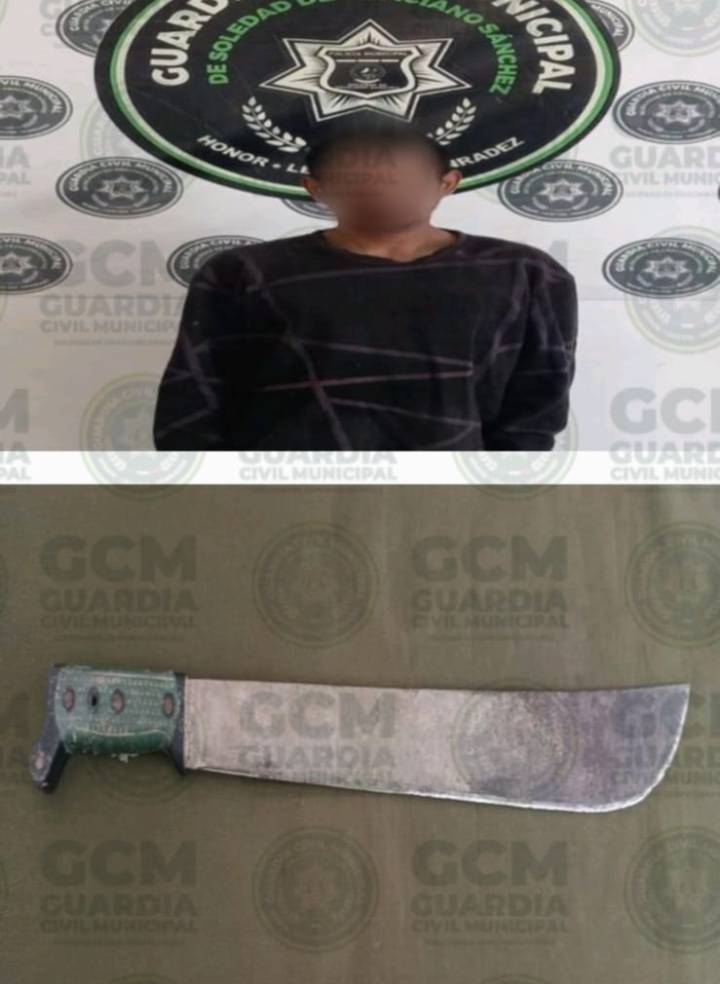 Sobre Avenida San Lorenzo, en la colonia San José Primera Sección, policías soledenses tuvieron contacto visual con un sujeto que cometía faltas administrativas, mismo al que se acercaron a indicarle la debida sanción, y luego de varios minutos de diálogo dijo llamarse Alfonso “N” de 41 años, a quien le localizaron un objeto punzocortante semejante a un machete.