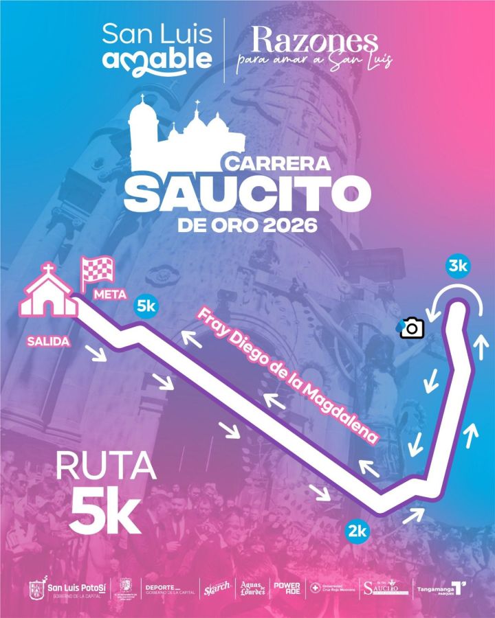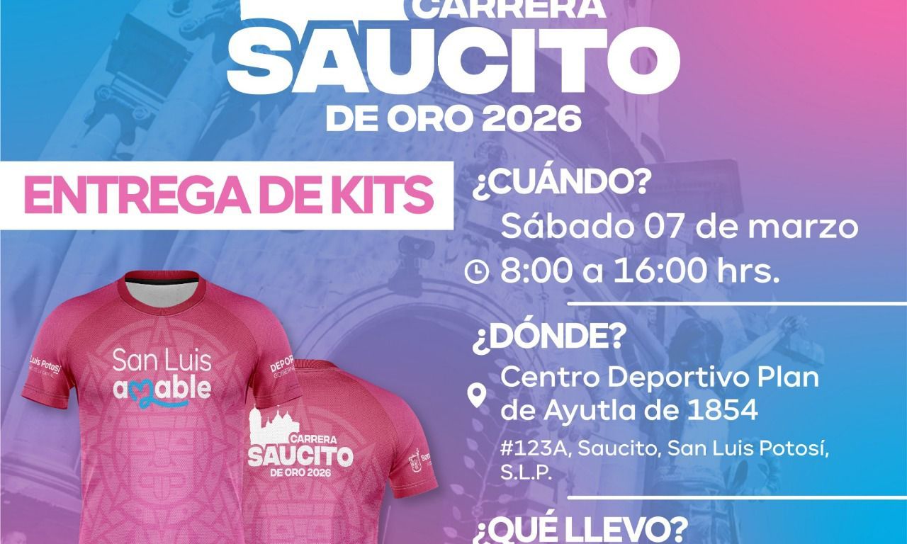 San Luis Potosí. – La Dirección de Deporte Municipal del Gobierno de la Capital, llevará a cabo este próximo 8 de marzo, la tradicional carrera atlética Saucito de Oro 2026 y mañana sábado se realizará la entrega de kit´s a los participantes.