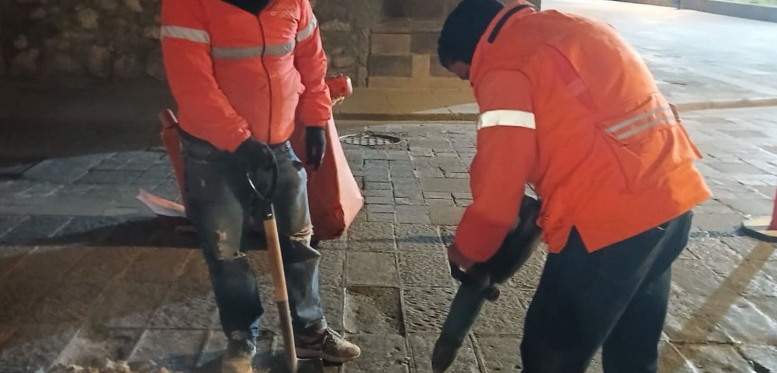 Asimismo, en las inmediaciones del Jardín de San Francisco, también durante horario nocturno, se repusieron baldosas de cantera con el propósito de conservar la imagen urbana y garantizar condiciones seguras para visitantes y habitantes. Las cuadrillas municipales también realizaron trabajos de bacheo en la calle Mariano Arista atendiendo puntos específicos que requerían reparación.