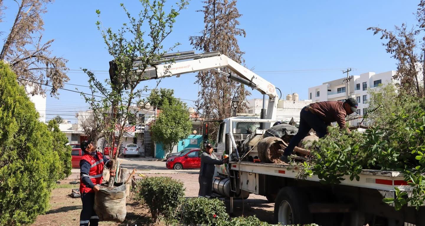 En atención a las instrucciones del Alcalde Enrique Galindo Ceballos, la Dirección de Servicios Municipales avanzó en la recuperación del tradicional espacio en la colonia Virreyes con la plantación de arbolado de mayor tamaño