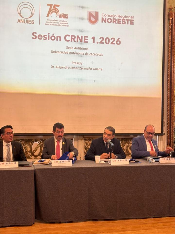 La Asociación Nacional de Universidades e Instituciones de Educación Superior (ANUIES), Región Noreste, llevó a cabo la Sesión Ordinaria 1.2026 del Consejo Regional Noreste de Educación (CRNE), la cual tuvo como sede la Universidad Autónoma de Zacatecas.