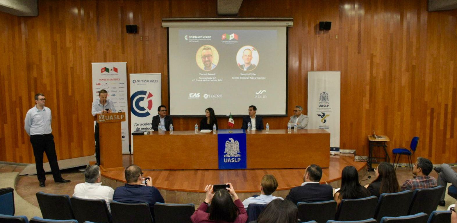 Este 19 de marzo se llevó a cabo el afterwork temático Comercio Exterior: Retos y oportunidades en tiempos de cambio en el Centro de Emprendimiento e Innovación de la Universidad Autónoma de San Luis Potosí, con la participación de empresarios, funcionarios estatales y docentes universitarios. El encuentro fue organizado por la Cámara de Comercio e Industria Franco Mexicana capítulo Bajío, en colaboración con SwissCham México, con el objetivo de abrir un espacio de diálogo sobre el entorno económico internacional.