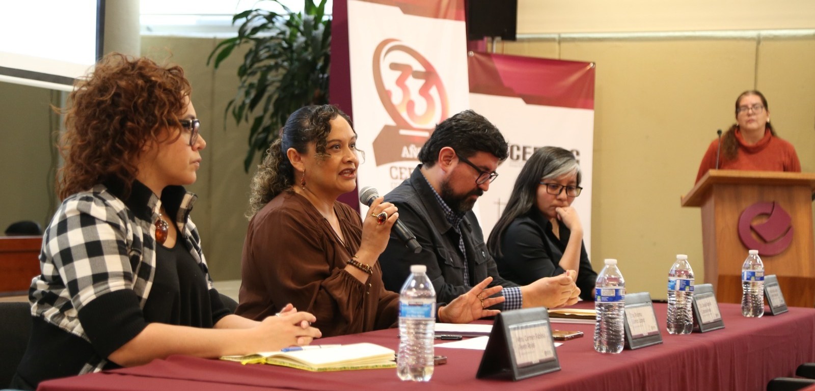 En la mesa de presentación estuvieron Paloma Blanco López, Presidenta Consejera del CEEPAC; Jesús Rogelio Córdova Nava, Director Ejecutivo de EDUCIAC; Nydia Lissette Carmen Morales, Coordinadora del diagnóstico; y las investigadoras Beatriz Ramos Portales y Alejandra Balduvin Álvarez; y Fabiola Rivera Rojas Coordinadora de Género e Inclusión del CEEPAC.