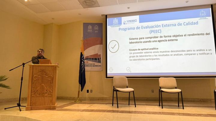 La Facultad de Ciencias Químicas de la Universidad Autónoma de San Luis Potosí (UASLP), a través de su Programa de Evaluación Externa de la Calidad (PEEC), bajo la coordinación del Dr. Juan Manuel Vargas Morales y un amplio equipo de trabajo, contribuyen al fortalecimiento de la calidad analítica en laboratorios clínicos en una amplia región del país.