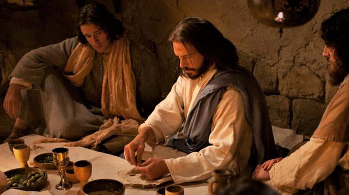 - La última cena de Jesús, con la participación de 12 discípulos o apóstoles, conocida como la Santa Cena. De acuerdo a la tradición judía Jesús cenó cordero en la Pascua.
