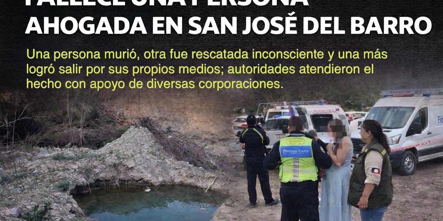 Soledad de Graciano Sánchez, SLP.– Una persona perdió la vida por ahogamiento en un cuerpo de agua ubicado en la localidad de San José del Barro, en los límites con la capital potosina, de acuerdo con el reporte de autoridades municipales.