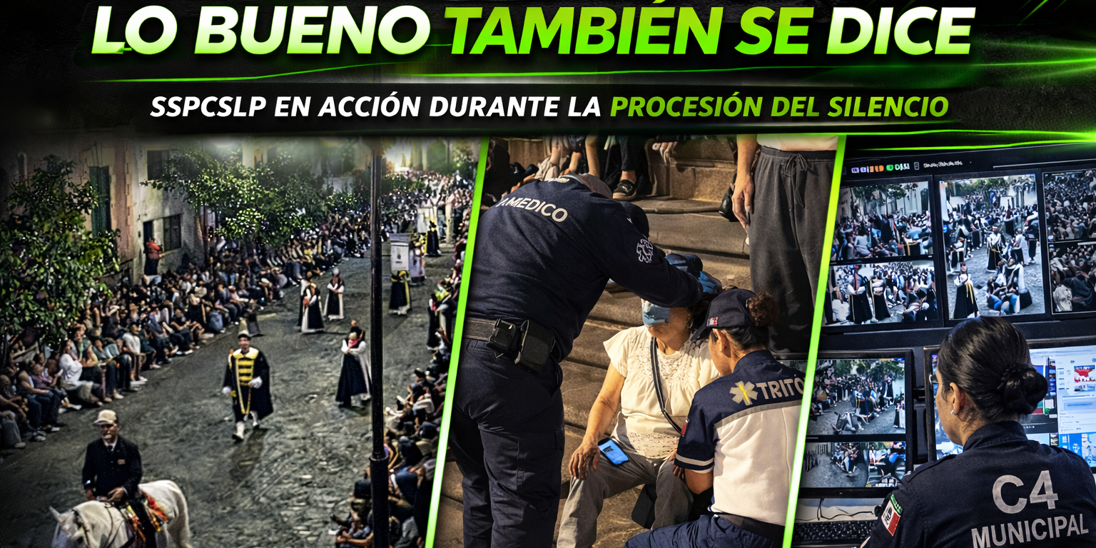 La Secretaría de Seguridad y Protección Ciudadana de San Luis Potosí (SSPCSLP) mantiene un operativo activo y bien coordinado durante el desarrollo de la tradicional Procesión del Silencio, uno de los eventos más importantes de la capital.