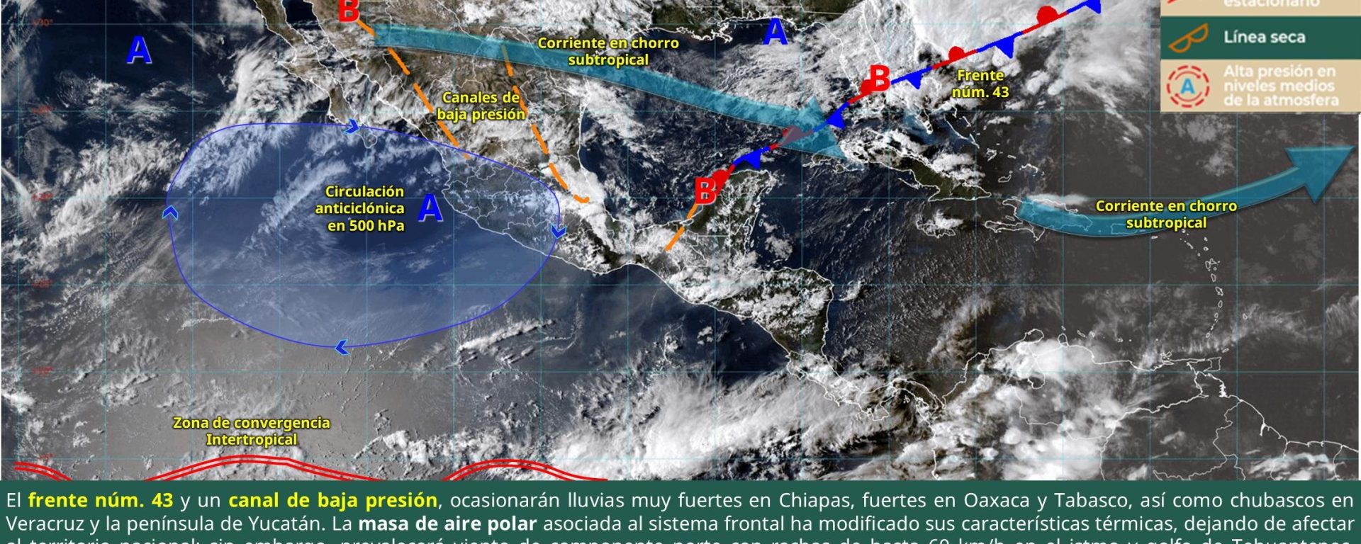 Viento de componente norte de 30 a 40 km/h con rachas de 50 a 70 km/h: istmo y golfo de Tehuantepec (Oaxaca y Chiapas).