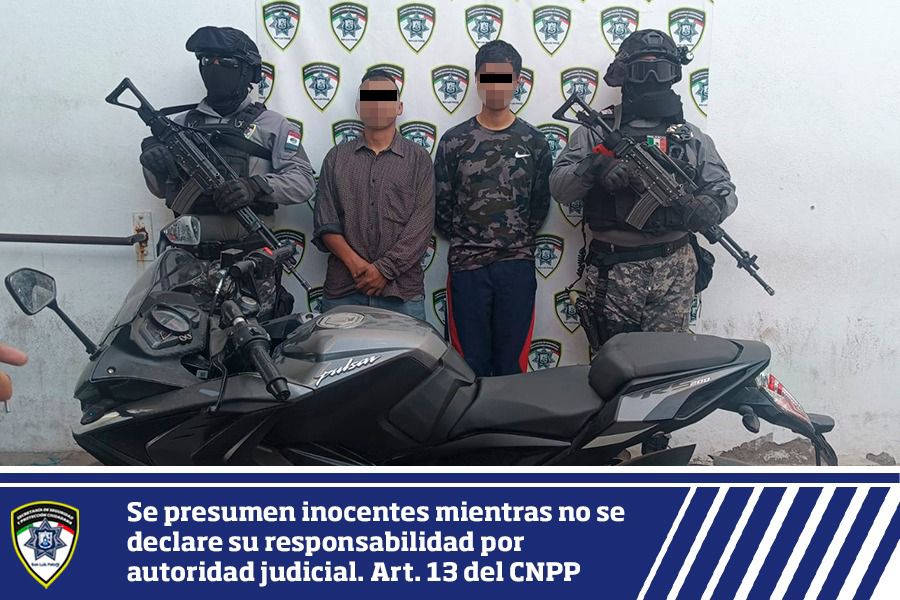 Oficiales de Guardia Municipal adscritos a la Unidad Mixta de Intervención y Reacción (UMIR) realizaron la detención de un hombre por circular a bordo de una motocicleta con placas sobrepuestas. En el hecho fue detenido también el copiloto, señalado por el probable delito contra servidores públicos al interferir en la labor policial durante el aseguramiento del vehículo.