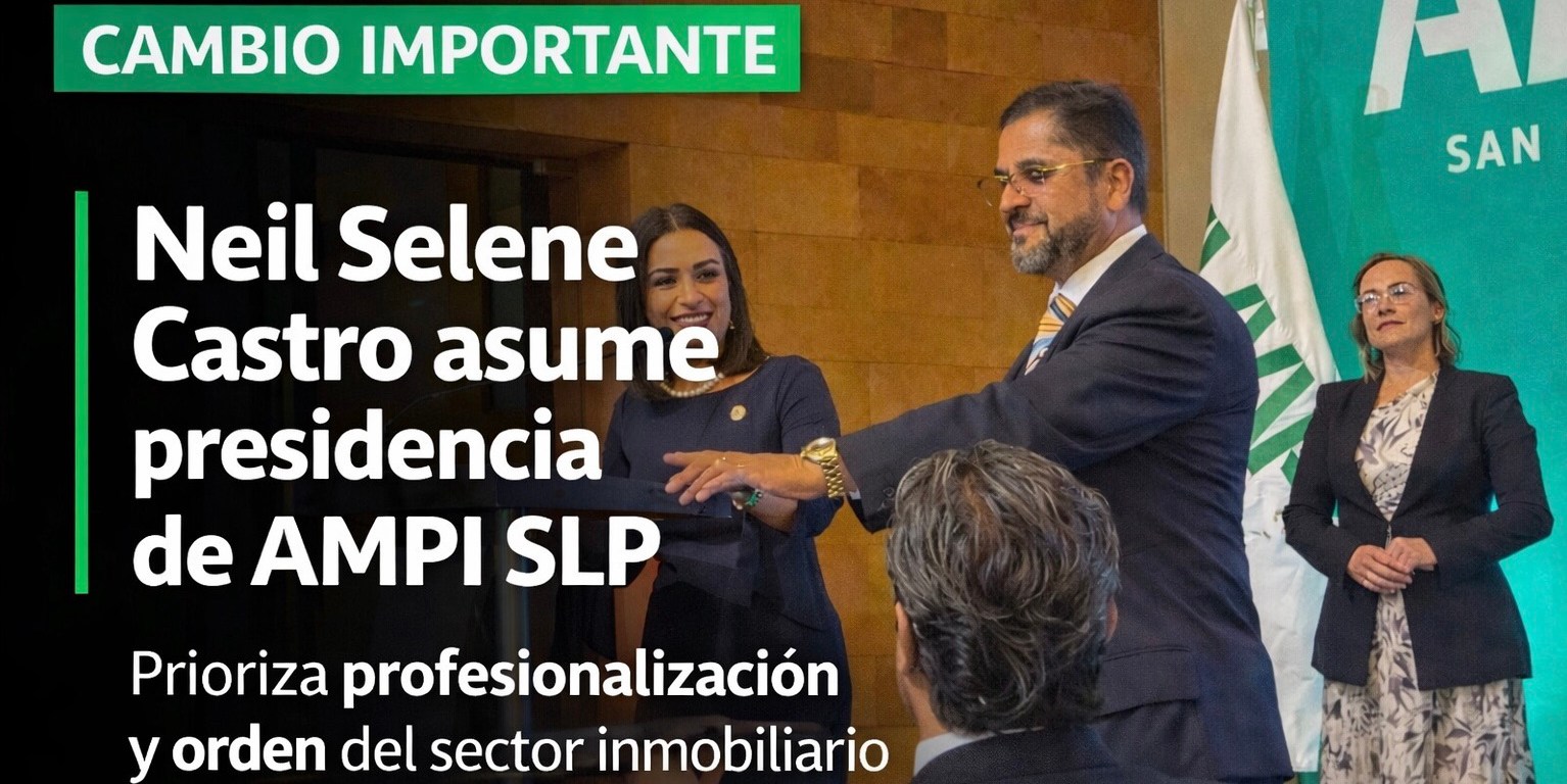 La Asociación Mexicana de Profesionales Inmobiliarios (AMPI) concretó el relevo de su dirigencia en San Luis Potosí, con la designación de Neil Selene Castro como nuevo presidente estatal, quien además asumirá funciones como consejero nacional del organismo.