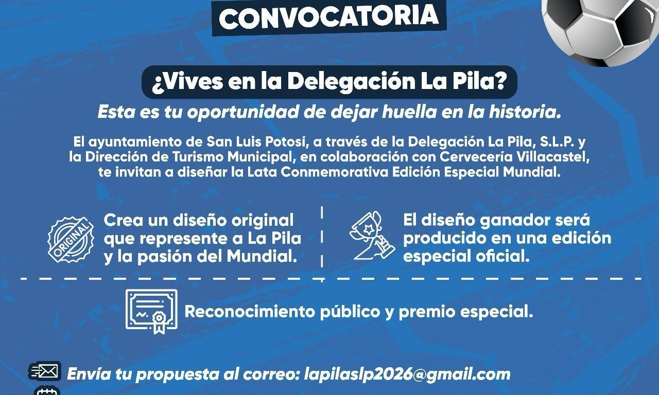 La propuesta debe ser enviada al siguiente correo electrónico: lapilaslp2026@gmail.com, y se tiene como fecha límite el próximo viernes. Cabe puntualizar que entre las bases para este concurso sobresalen que no se admiten imágenes creadas con inteligencia artificial, ni con logotipos oficiales protegidos por derechos de autor.