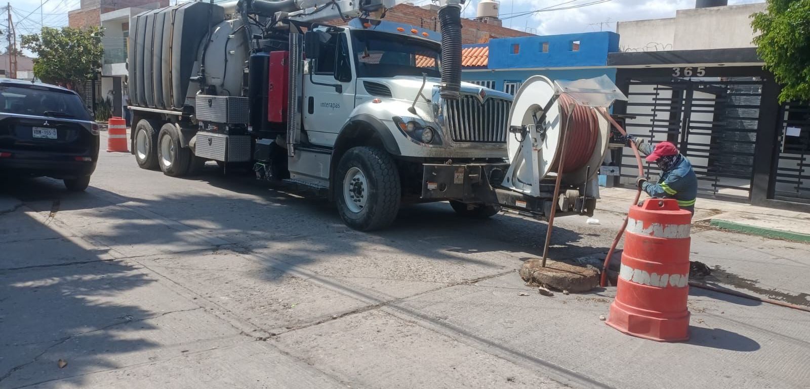 SLP.- INTERAPAS mantiene sin pausa la limpieza de redes sanitarias en la Zona Metropolitana, y ante la próxima temporada de lluvias intensificó los trabajos.
