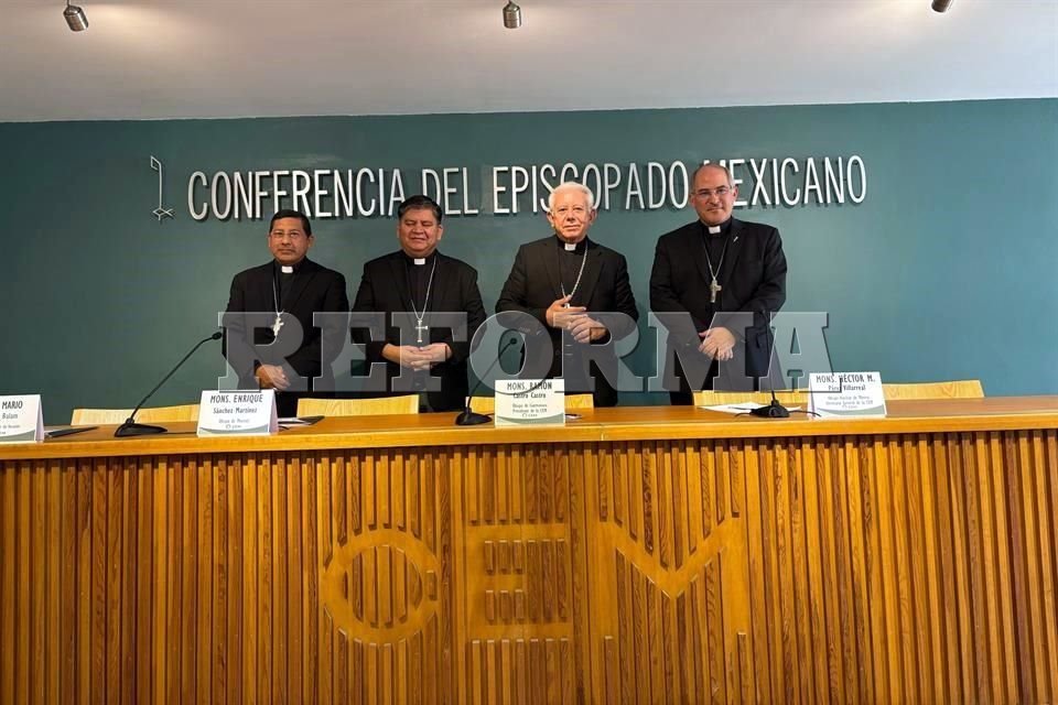 Conferencia de prensa de la Conferencia del Episcopado Mexicano (CEM) el 16 de abril de 2026. De izquierda a derecha: Mons. Francisco Javier Acero, Obispo Auxiliar de la Arquidiócesis Primada de México; Mons. Héctor Mario Pérez Villarreal, secretario general de la CEM; Mons. Ramón Castro Castro, presidente de la CEM; Mons. Jaime Calderón Calderón, vicepresidente de la CEM; y Mons. Andrés Sáinz Márquez, Obispo Prelado de El Nayar. | Crédito: EWTN Noticias.