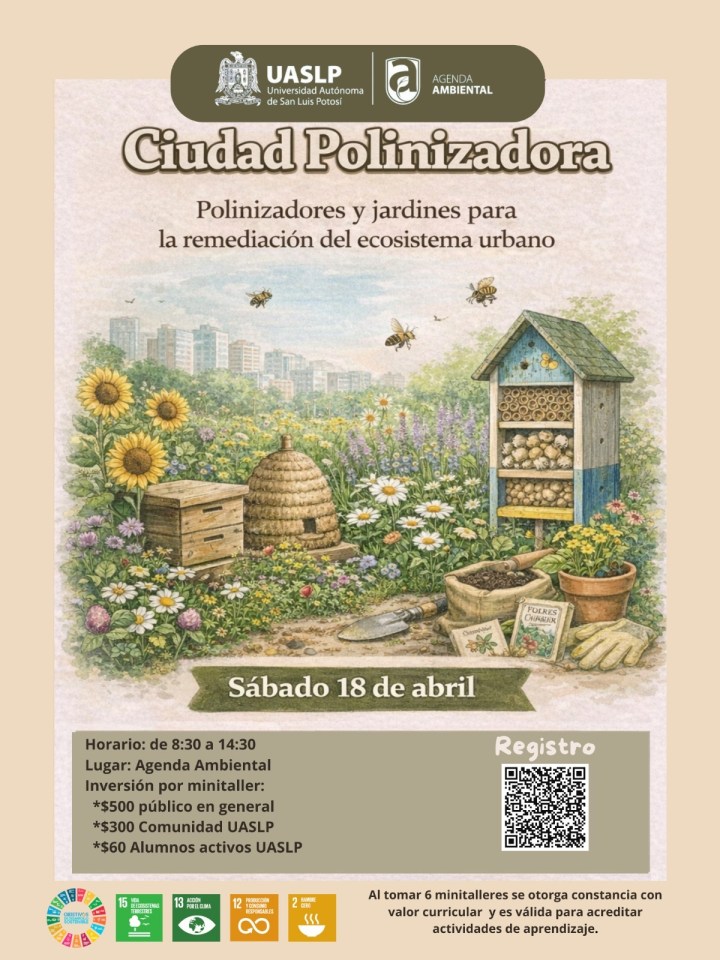 Con el objetivo de fomentar la conciencia ambiental y la participación ciudadana, la Agenda Ambiental de la Universidad Autónoma de San Luis Potosí (UASLP) llevará a cabo este sábado 18 de abril el taller “Ciudad Polinizadora, polinizadores y jardines para la remediación del ecosistema urbano”, informó el diseñador industrial Dante Jiménez Castillo, responsable del Unihuerto.