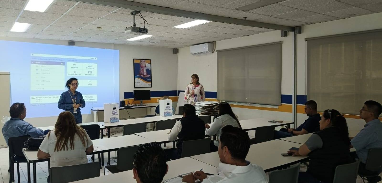El equipo de la Coordinación de Educación, Capacitación y Cultura del Agua de la citada dirección, que encabeza María Guadalupe Urbina Acevedo acudió a la compañía SABIC, para presentar el programa de recolección de pilas.