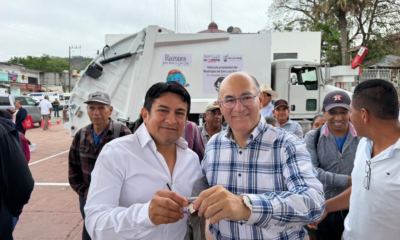 El Alcalde Enrique Galindo entrega en comodato un camión recolector de desechos que ya no se utiliza en San Luis Capital, por lo que se beneficia a Tampacan y otros municipios.