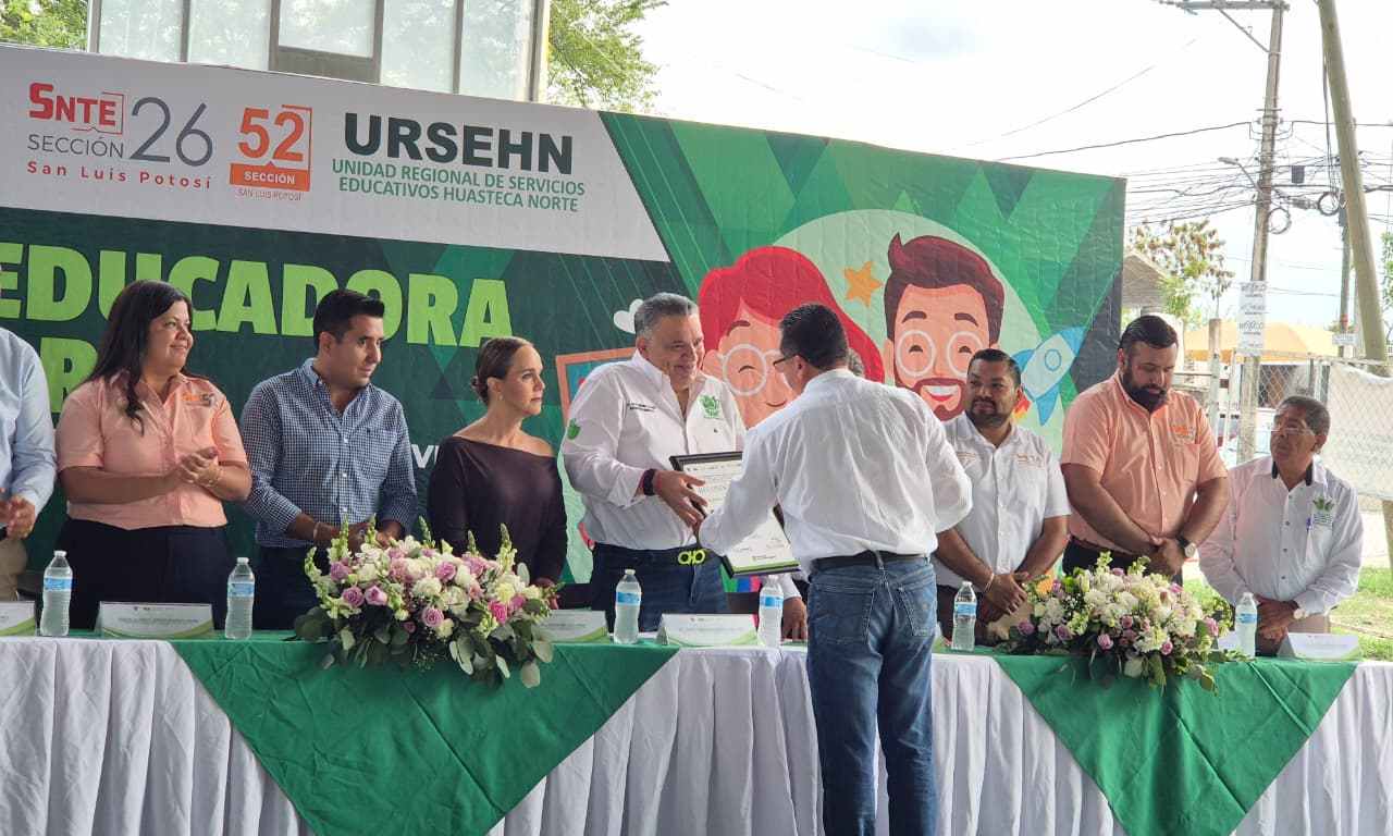 CIUDAD VALLES. S.L.P.- El Presidente Municipal David Armando Medina Salazar, acompañado de su esposa y Presidenta del Sistema Municipal DIF, Ena Avendaño Uscanga, encabezó el festejo con motivo del Día de la Educadora y del Educador, reconociendo el compromiso, vocación y entrega de quienes dedican su vida a la formación de la primera infancia.