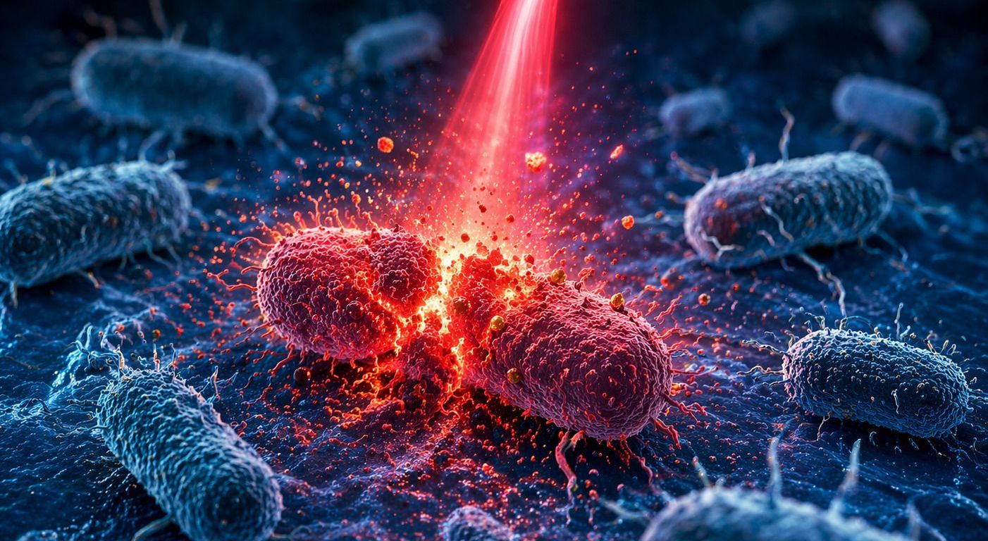 La Organización Mundial de la Salud (OMS) ha catalogado la resistencia antimicrobiana como una de las diez principales amenazas globales para la salud pública. En un entorno donde los fármacos convencionales fracasan ante bacterias multirresistentes, la tecnología fototérmica no solo emerge como una alternativa, sino como un cambio de paradigma estratégico. Mientras los antibióticos químicos dependen de rutas metabólicas que las bacterias «aprenden» a bloquear, la Terapia Fototérmica (TFT) utiliza la física para ejecutar una «cirugía térmica» letal.