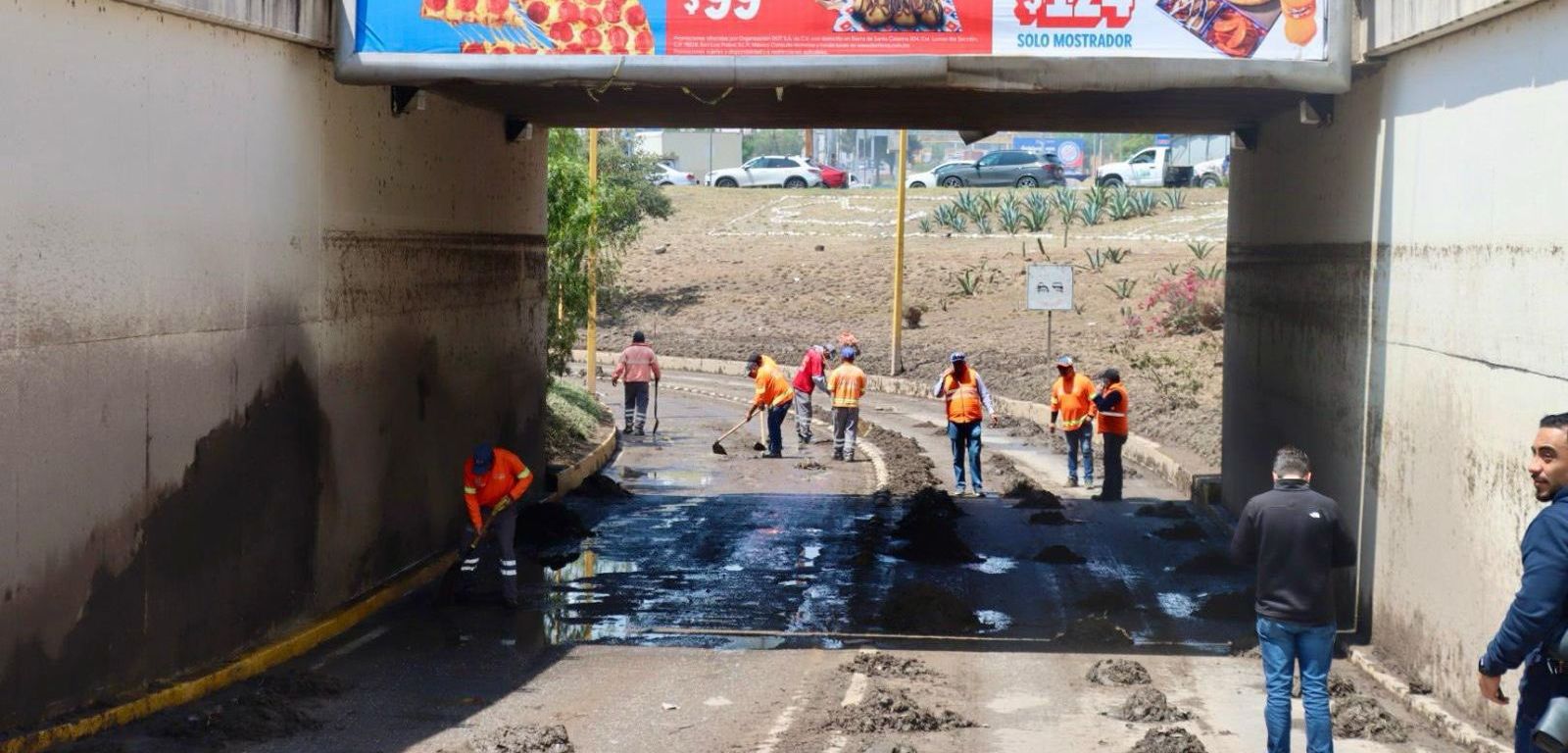 Desde las primeras horas, cuadrillas de distintas dependencias municipales intervinieron este punto estratégico del poniente de la ciudad, donde se acumuló lodo, basura y desechos arrastrados por la corriente pluvial, logrando restablecer la circulación vehicular en el menor tiempo posible.