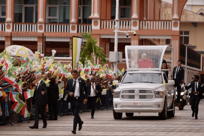 El Papa recorrió en papamóvil las calles de Guinea Ecuatorial | Crédito: Patrick Leonard/EWTN News