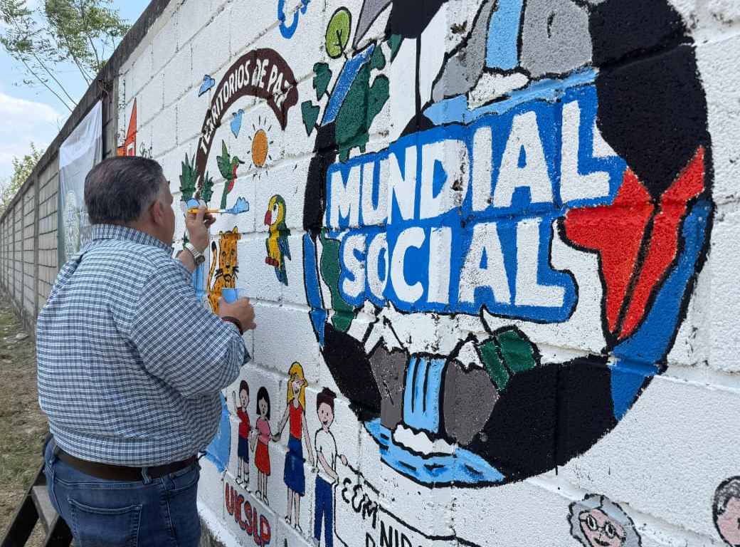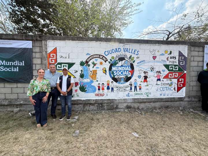 CIUDAD VALLES, S.L.P.– En un esfuerzo conjunto por impulsar el bienestar social y fortalecer la participación de las juventudes, el Gobierno Municipal, que encabeza el Presidente David Armando Medina Salazar, y el Gobierno Federal, a través de la Coordinación de Territorios de Paz en Ciudad Valles, a cargo de Javier Martínez Reyes, llevaron a cabo la Jornada Nacional de «Tequios por la Tierra y Murales Mundialistas» en la localidad de Tampaya.