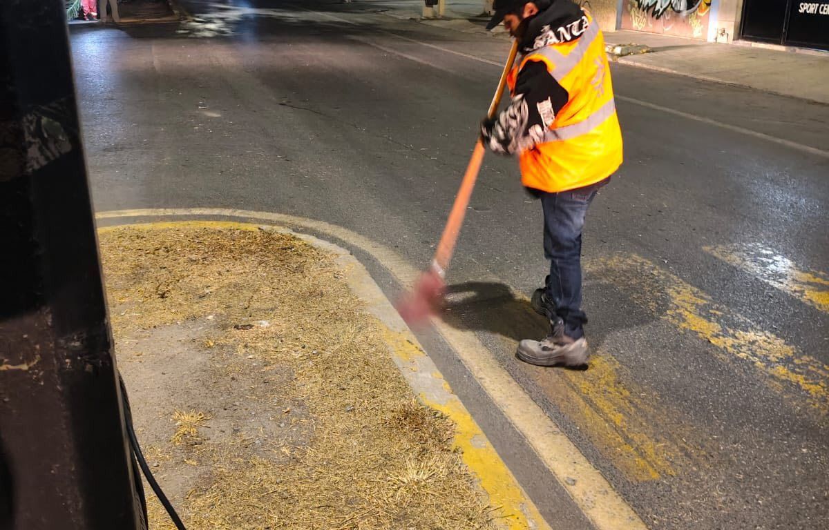 Entre los trabajos más recientes efectuados durante la noche destacan el hidrolavado en la zona de San Juan de Guadalupe, así como labores de limpieza general en la avenida Morales Saucito. De manera paralela, el ayuntamiento también avanza en el mantenimiento de la pintura de las canchas ubicadas en la calle Rosalío Sánchez Niño, como parte del programa “Color, Mi Jugada”.