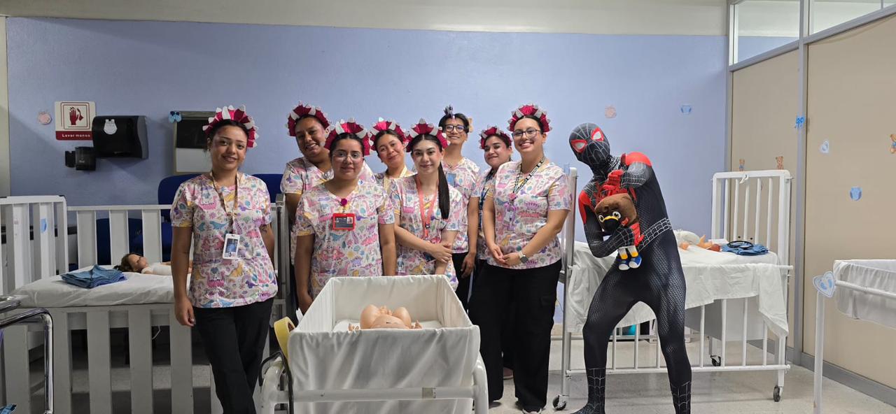 Decenas de niñas y niños de diferentes edades acudieron a las instalaciones de la Facultad de Enfermería y Nutrición, donde estudiantes y docentes se caracterizaron como princesas, superhéroes y superheroínas para convivir con ellos en actividades que incluyeron temas de alimentación, primeros auxilios con maniquíes, simulaciones de quirófano y cuidado de recién nacidos.