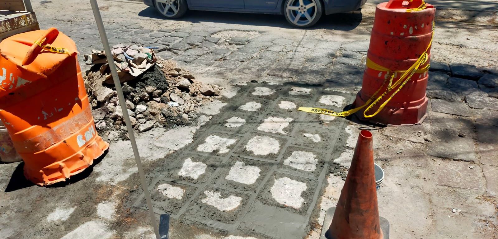 Reponen 61 piezas de adoquín para mejorar la movilidad en zona de alto tránsito.