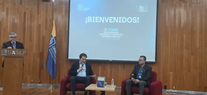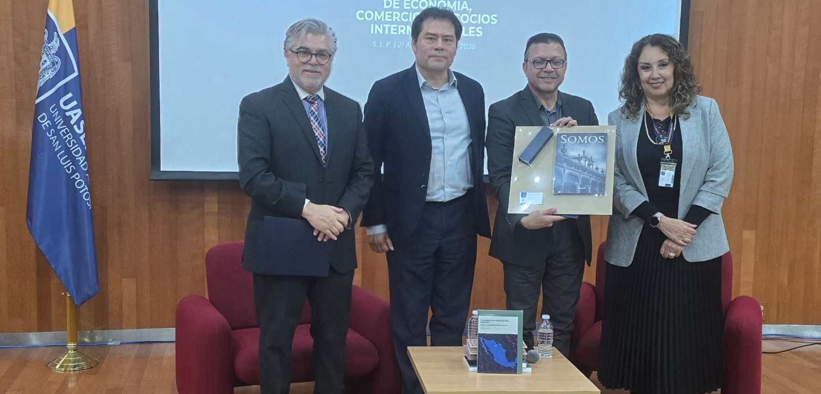 En el marco del 2º Foro de Economía, Comercio y Negocios Internacionales, la Facultad de Economía de la Universidad Autónoma de San Luis Potosí (UASLP) fue sede de la presentación del libro La “Economía en los tiempos del clima atrapa-calor. México y sus renglones en la burbuja climática”, del doctor Vicente Germán Soto, investigador de la Universidad Autónoma Agraria Antonio Narro (UAAAN), obra que propone un análisis crítico sobre la relación entre el desarrollo económico y los fenómenos climáticos.