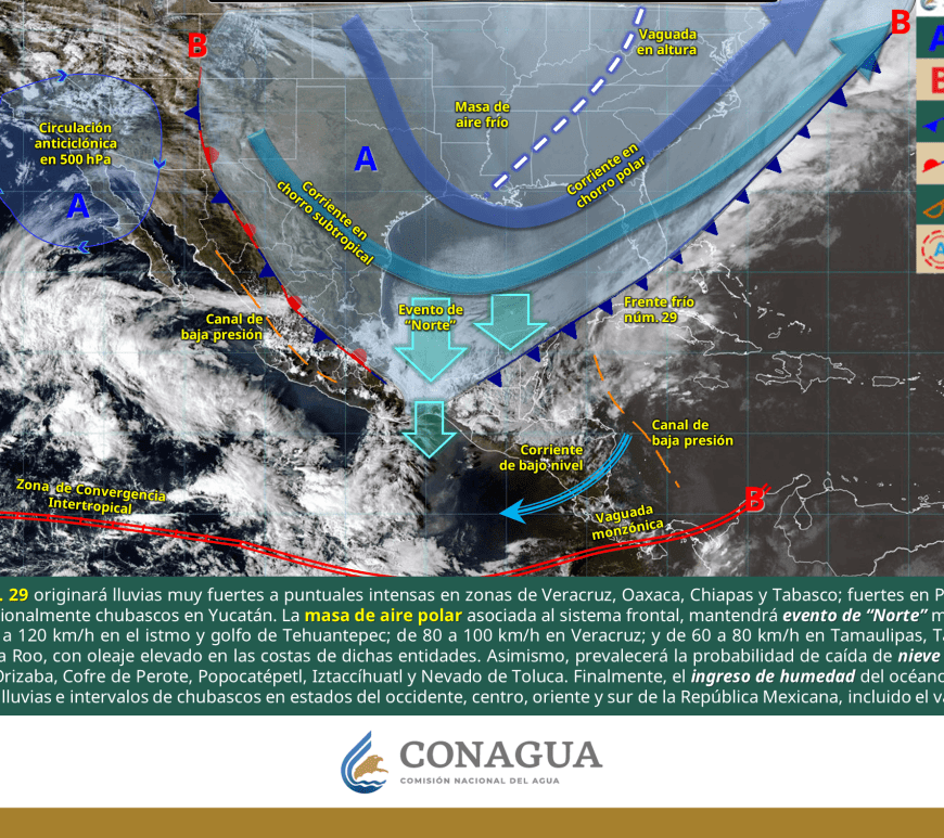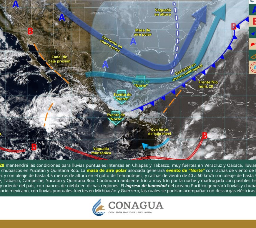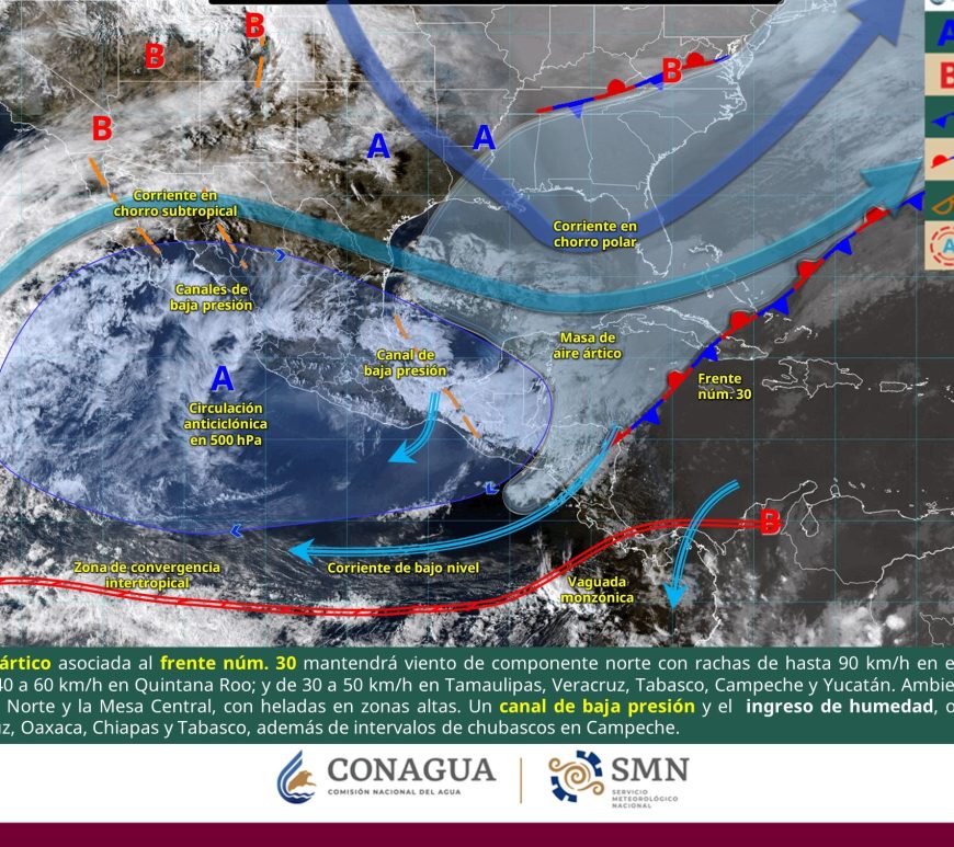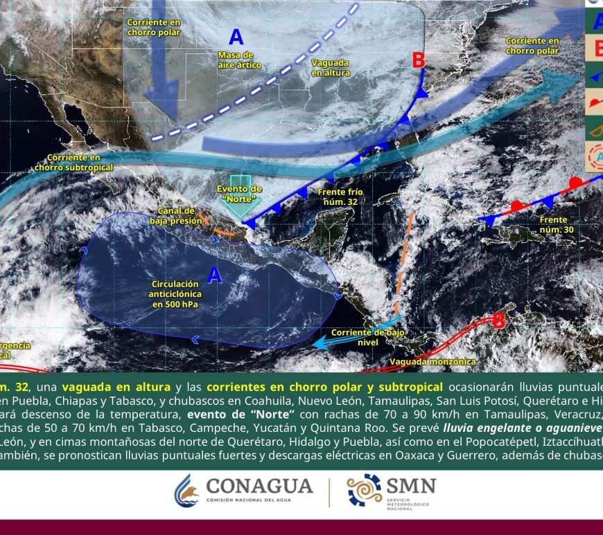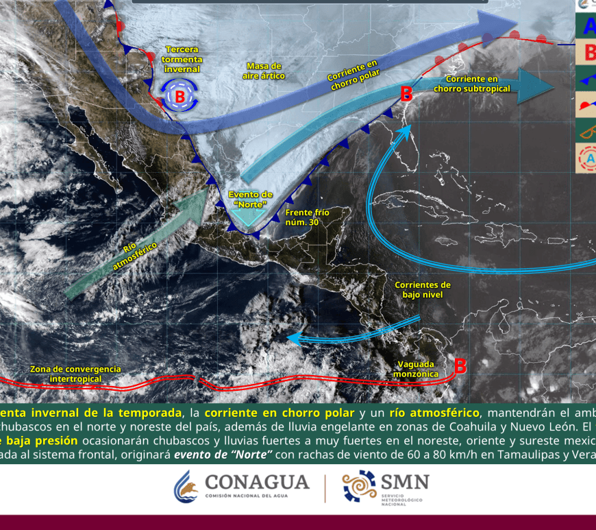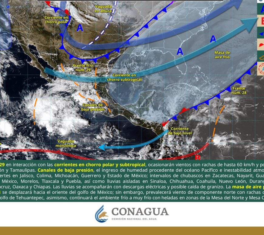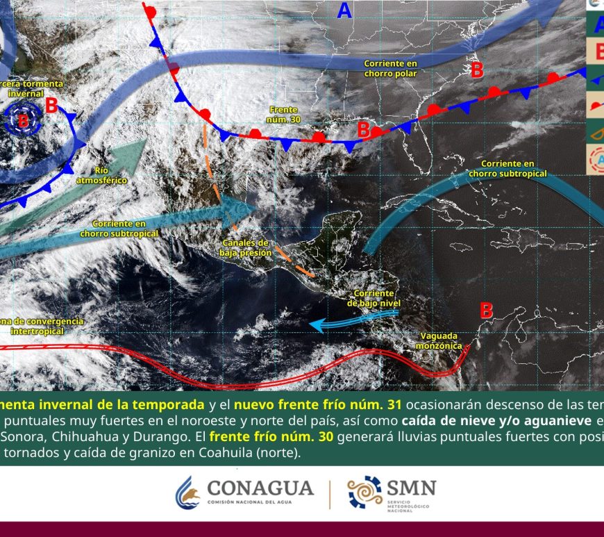 Cielo parcialmente nublado durante el día y sin lluvia en la región. Ambiente muy frío durante la mañana y gélido con heladas en zonas altas de Chihuahua y Durango. Por la tarde, ambiente fresco a templado. Viento de dirección variable de 20 a 30 km/h en la región con rachas de 40 a 60 km/h en Chihuahua, Durango, Coahuila y Nuevo León. Pronóstico de lluvias … Continúa leyendo Pronóstico Meteorológico