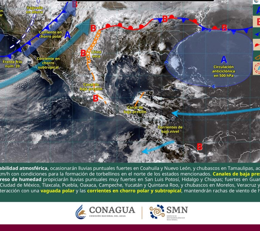 Cielo medio nublado a nublado durante el día con lluvias aisladas en San Luis Potosí. Sin lluvia en el resto de la región. Por la mañana, ambiente muy frío a frío en la región. Durante la tarde, ambiente cálido a caluroso, siendo muy caluroso en Chihuahua (oeste). Iniciando onda de calor en Chihuahua (suroeste) y Durango (noroeste y suroeste). Viento de dirección variable de 10 a 20 … Continúa leyendo Pronóstico Meteorológico
