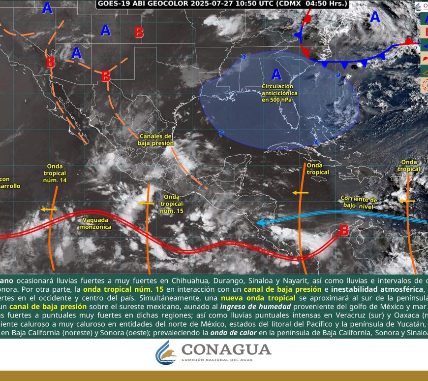 Por la mañana, cielo medio nublado; ambiente templado a cálido, fresco con bancos de niebla en las sierras, y frío en zonas serranas de Chihuahua y Durango. Durante la tarde, ambiente cálido a caluroso; y muy caluroso en el noreste y suroeste de Chihuahua y el este de Nuevo León. Por la tarde, cielo nublado con lluvias puntuales fuertes en Chihuahua, Nuevo León, Durango, Zacatecas … Continúa leyendo Pronóstico Meteorológico