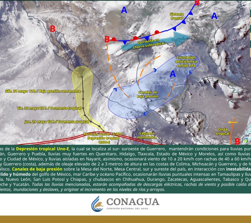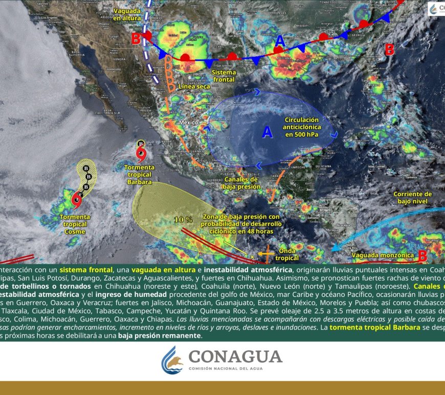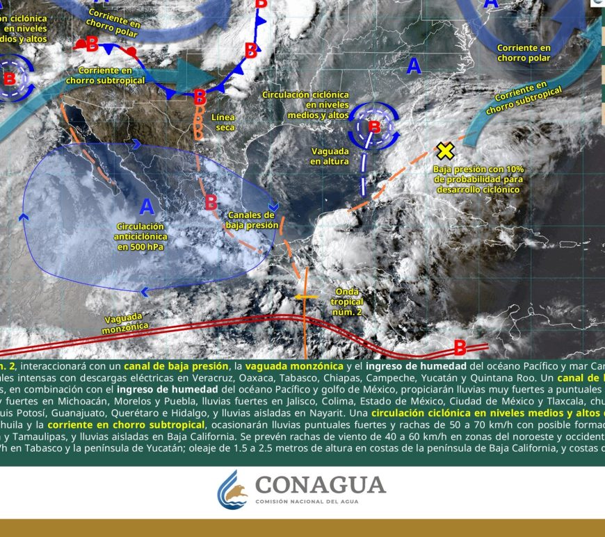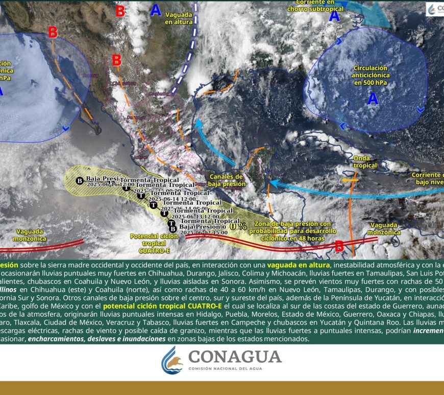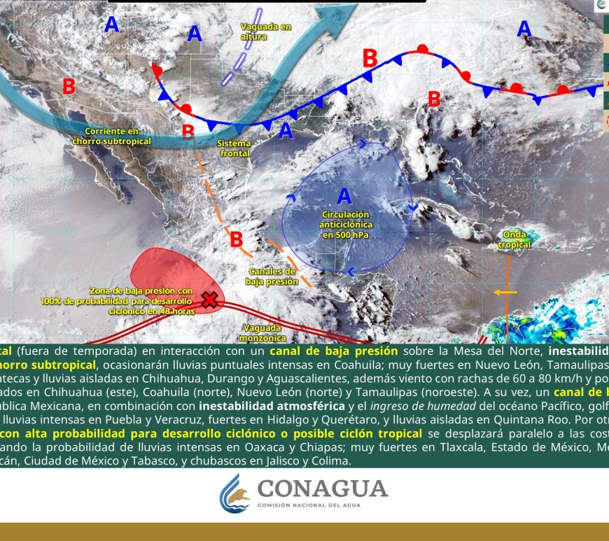 Por la mañana, cielo parcialmente nublado; ambiente de fresco a templado. Posibles lluvias aisladas matutinas en San Luis Potosí. Durante la tarde, cielo nublado con lluvias puntuales fuertes en Chihuahua, Durango, Coahuila y San Luis Potosí, las cuales podrían incrementar los niveles de ríos y arroyos, generar deslaves, inundaciones, encharcamientos y visibilidad reducida, además de chubascos en Nuevo León, Zacatecas y Aguascalientes. Todas con descargas eléctricas. … Continúa leyendo Pronóstico Meteorológico