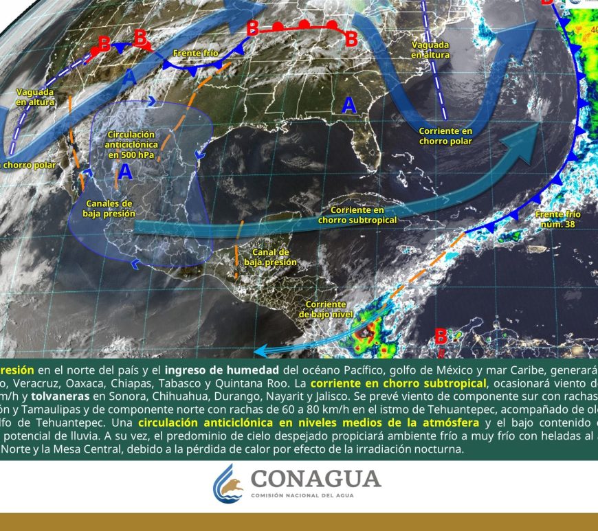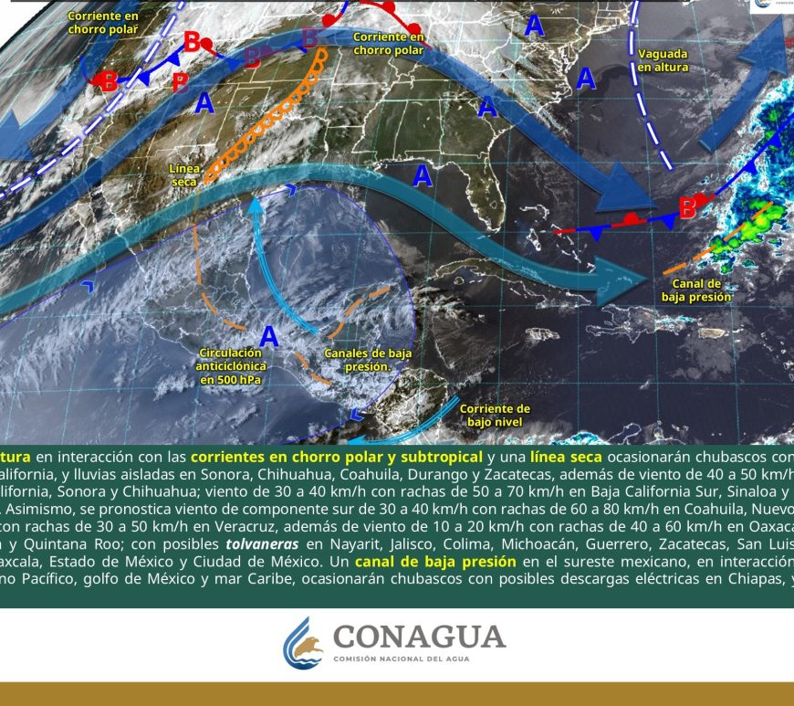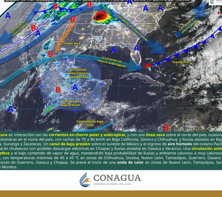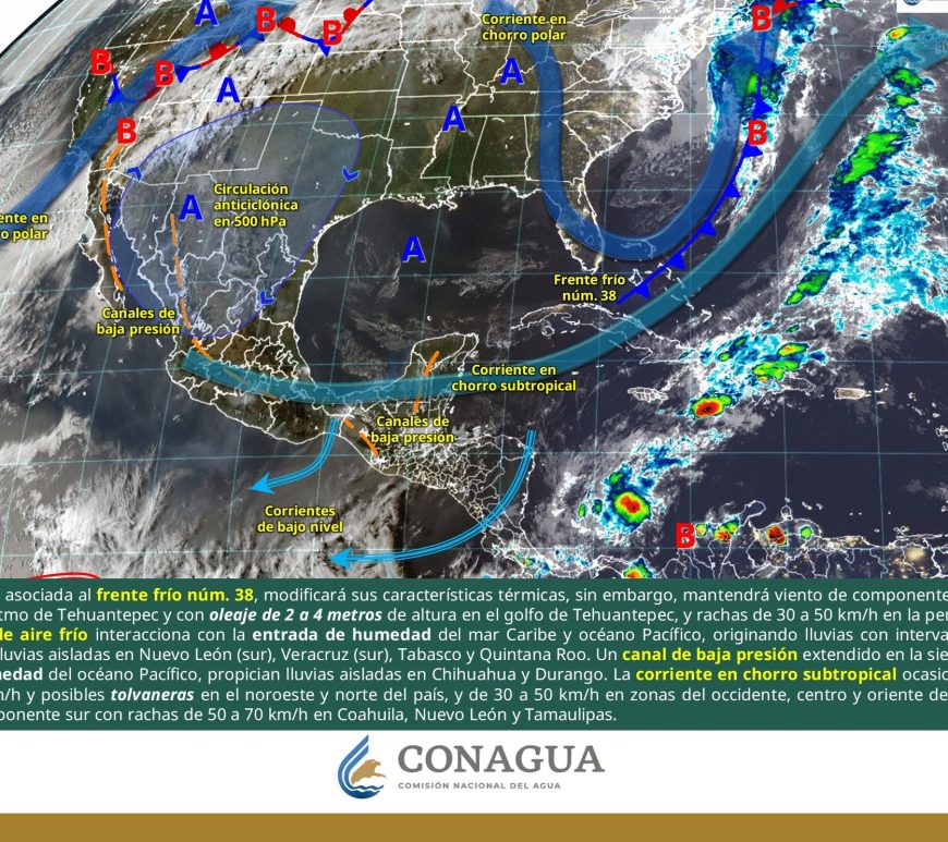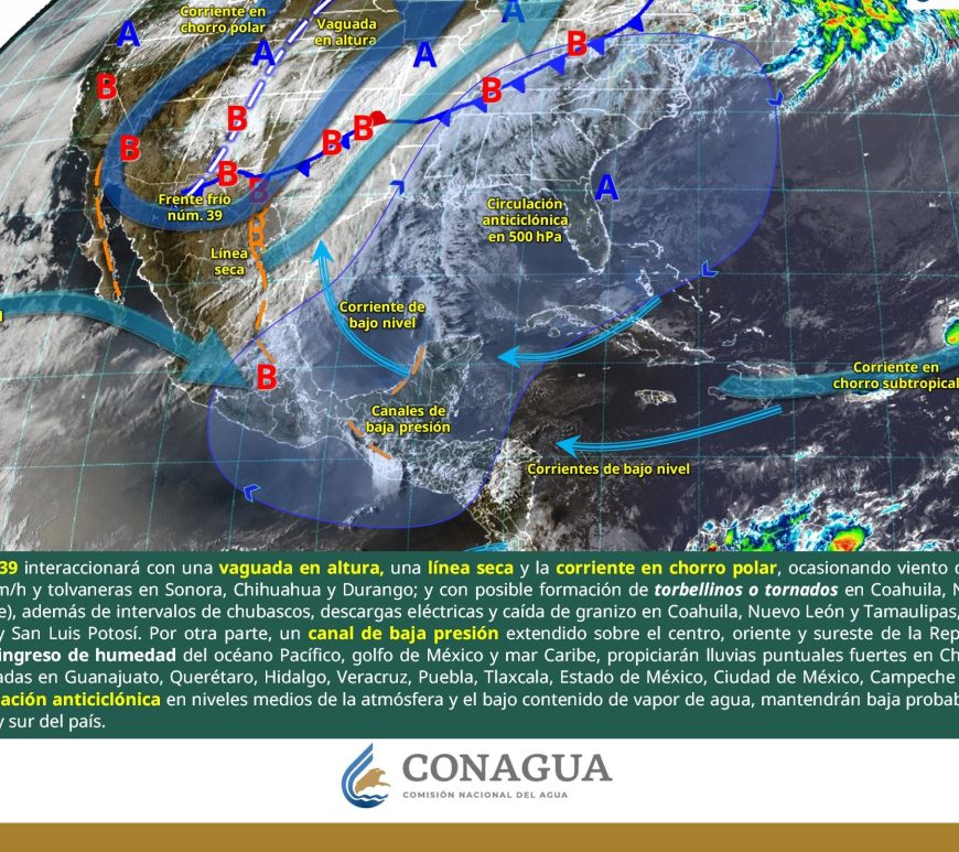 Pronóstico de lluvias Lluvias fuertes con puntuales muy fuertes (50 a 75 mm): Coahuila, Oaxaca y Chiapas.Chubascos con lluvias puntuales fuertes (25 a 50 mm): Nuevo León, Tamaulipas y Puebla.Intervalos de chubascos (5 a 25 mm): San Luis Potosí, Tlaxcala, Estado de México, Ciudad de México, Morelos y Veracruz.Lluvias aisladas (0.1 a 5 mm): Chihuahua, Querétaro, Michoacán, Guerrero, Campeche, Yucatán y Quintana Roo. Pronóstico de … Continúa leyendo Pronóstico Meteorológico 2 de Mayo