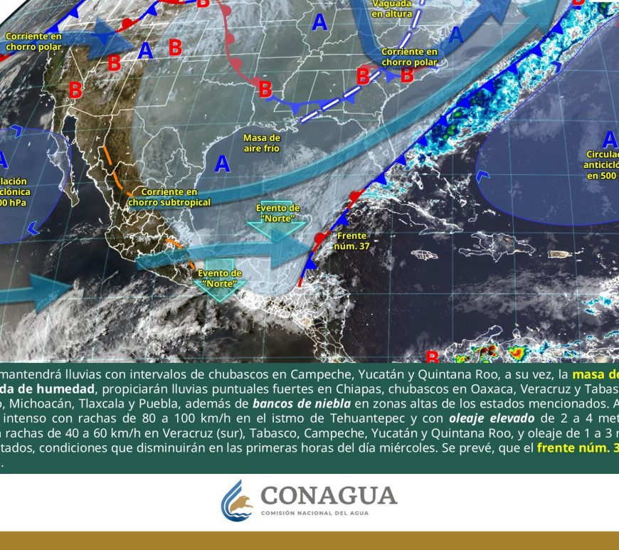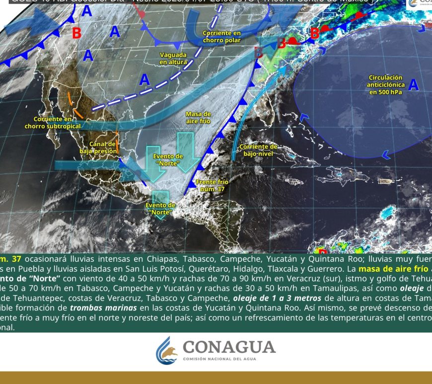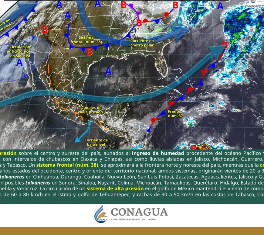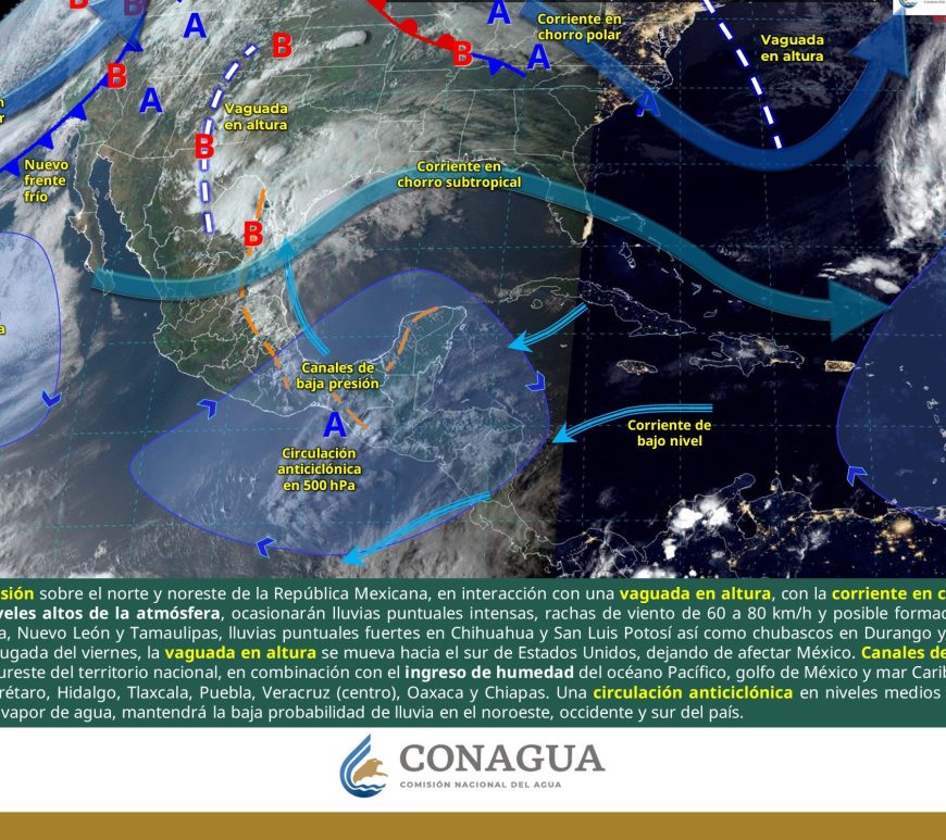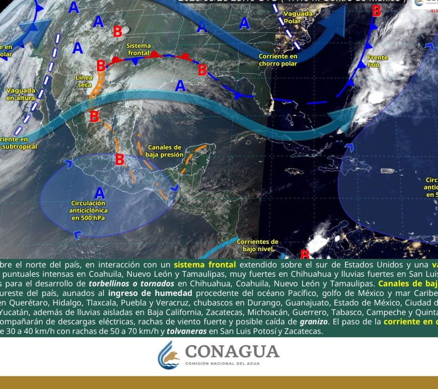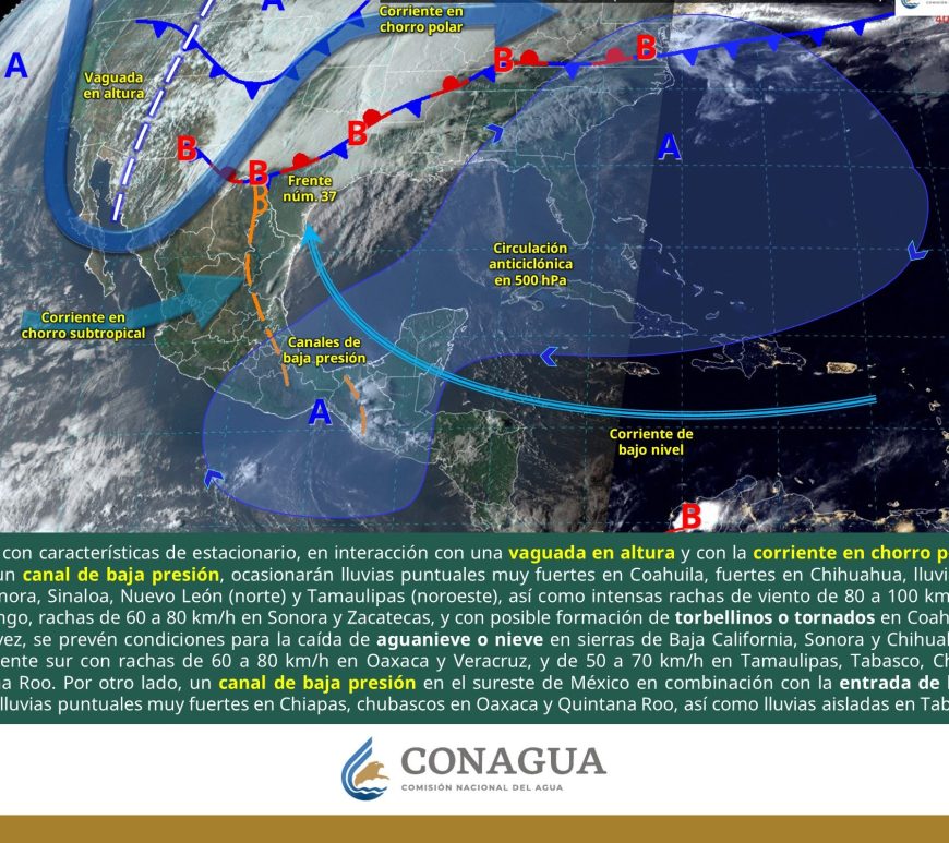Cielo parcialmente nublado y sin lluvia en la región. Por la mañana, ambiente frío y muy frío a gélido en zonas serranas de Chihuahua y Durango. Por la tarde, ambiente caluroso a muy caluroso, con ambiente extremadamente caluroso en Chihuahua (suroeste). Viento de componente este de 20 a 30 km/h con rachas de 50 a 70 km/h y tolvaneras en Chihuahua, Coahuila, Nuevo León, Durango, Zacatecas, … Continúa leyendo Pronóstico Meteorológico 11 de Abril
