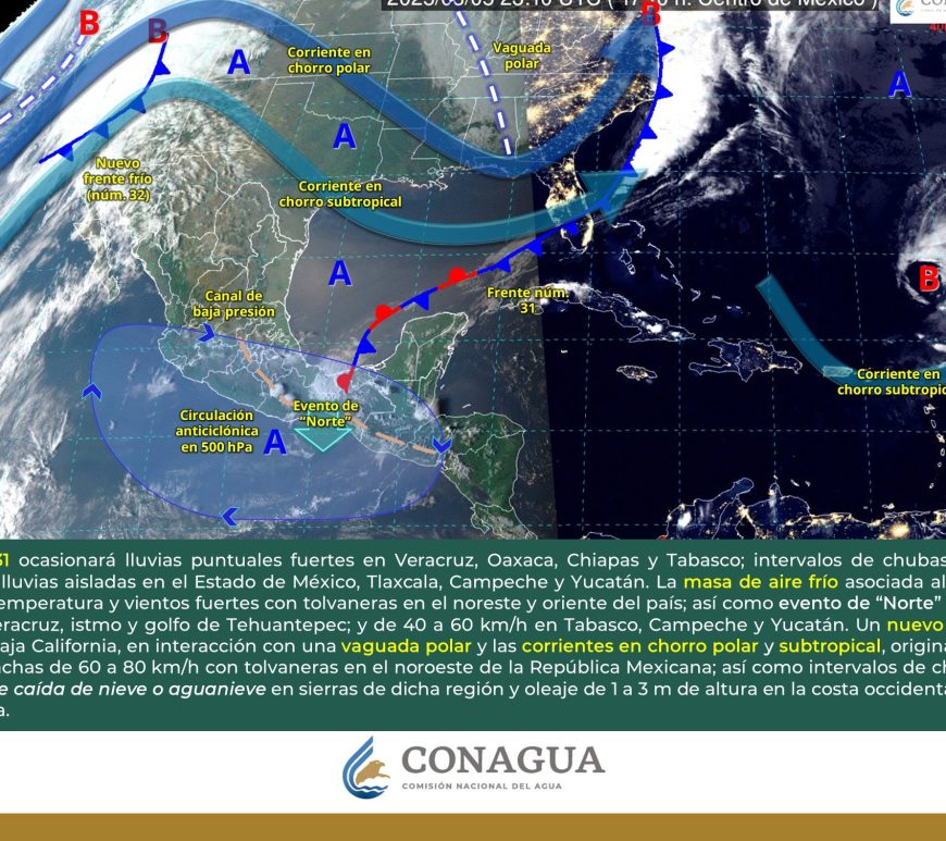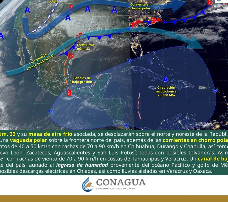 En el transcurso del día, cielo despejado a medio nublado. Por la mañana, ambiente frío a muy frío con heladas en sierras de Zacatecas, San Luis Potosí y Aguascalientes, así como ambiente gélido con heladas en zonas serranas de Chihuahua y Durango. Durante la tarde, ambiente cálido a caluroso, y muy caluroso en Chihuahua (suroeste), Durango, Coahuila, Nuevo León y San Luis Potosí; incremento de … Continúa leyendo Pronóstico Meteorológico 23 de Marzo