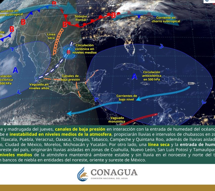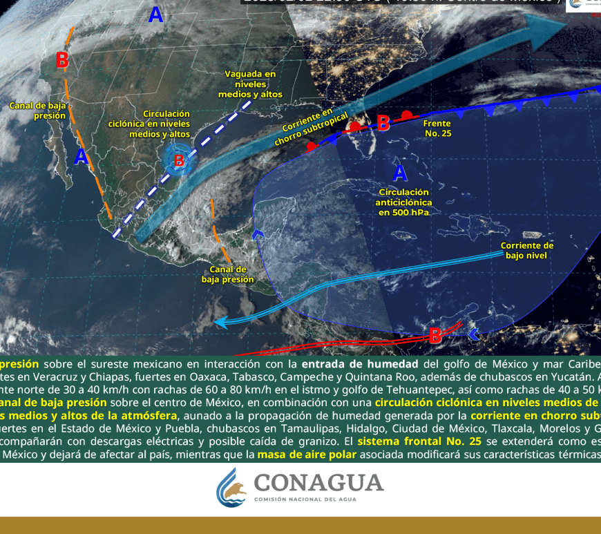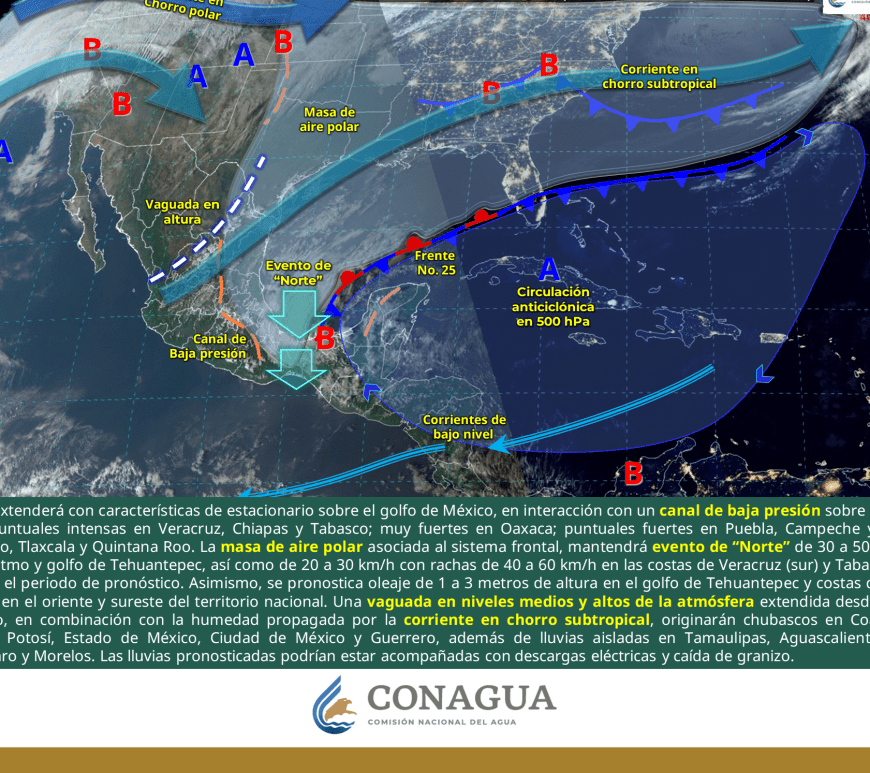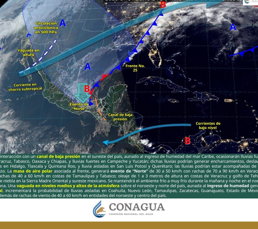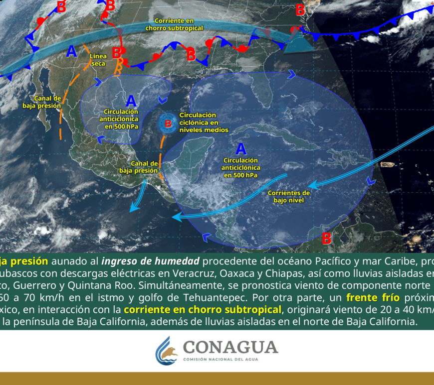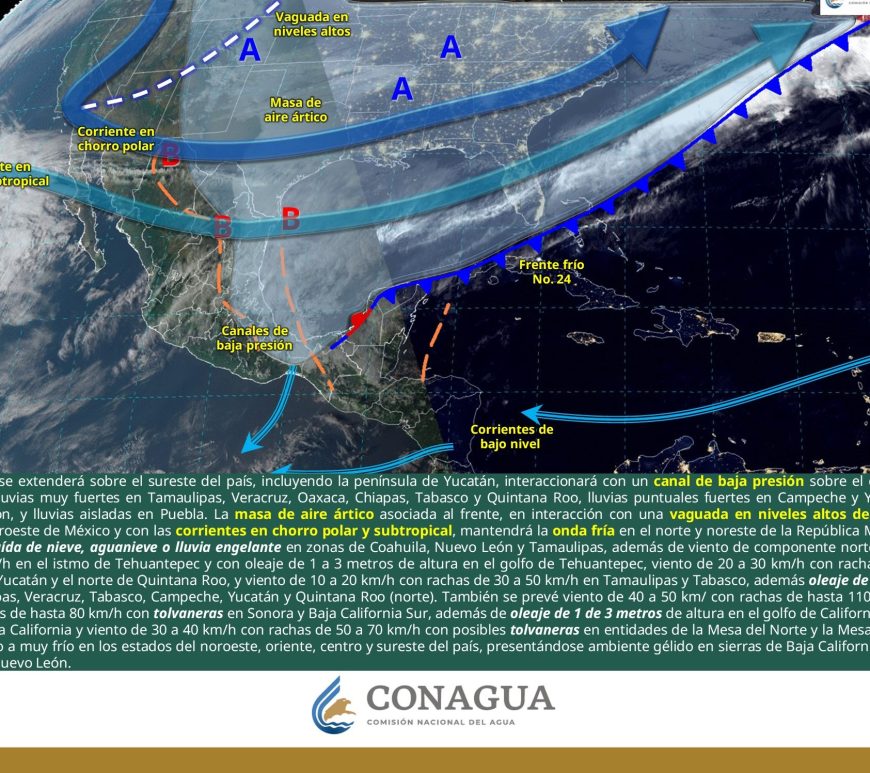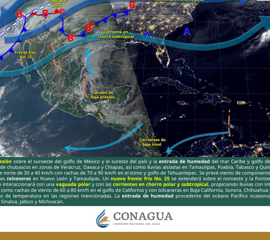 Cielo despejado y sin lluvia en la mayor parte de la región. Así como condiciones de cielo medio nublado con lluvias aisladas en el norte de Coahuila y Nuevo León. Ambiente frío a muy frío por la mañana y cálido a caluroso durante la tarde. Viento de dirección variable de 20 a 30 km/h con rachas de 40 a 60 km/h y posibles tolvaneras en Chihuahua y Durango, así como … Continúa leyendo Pronóstico Meteorológico 9 de Febrero