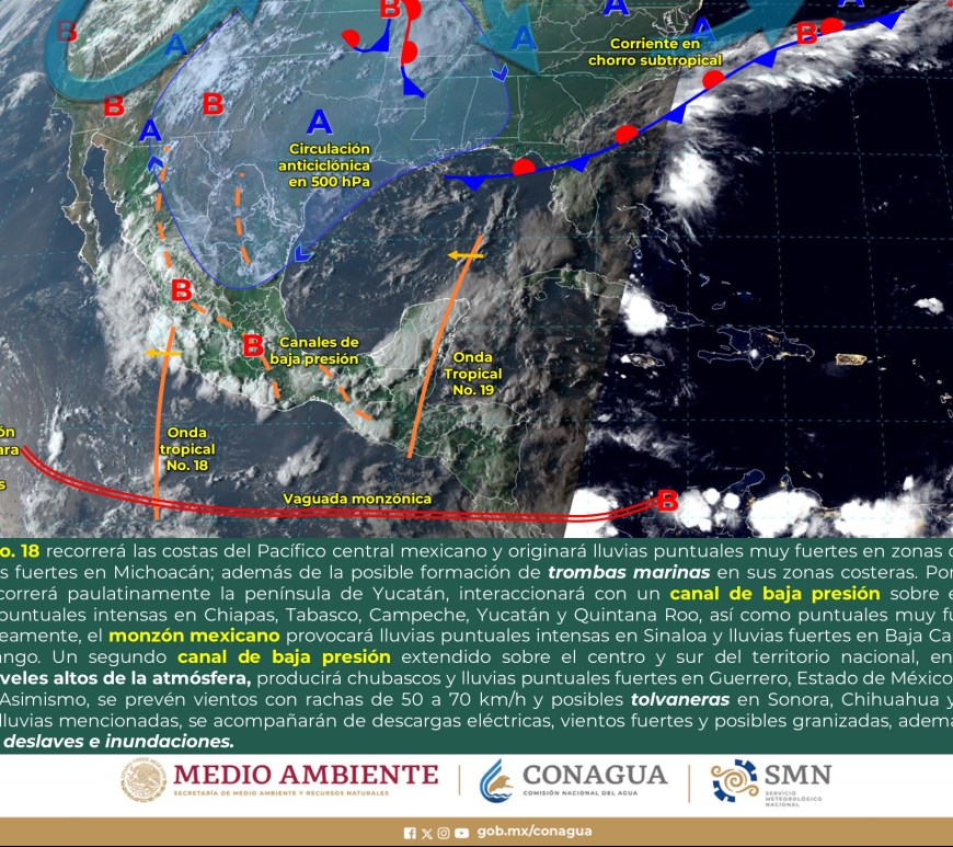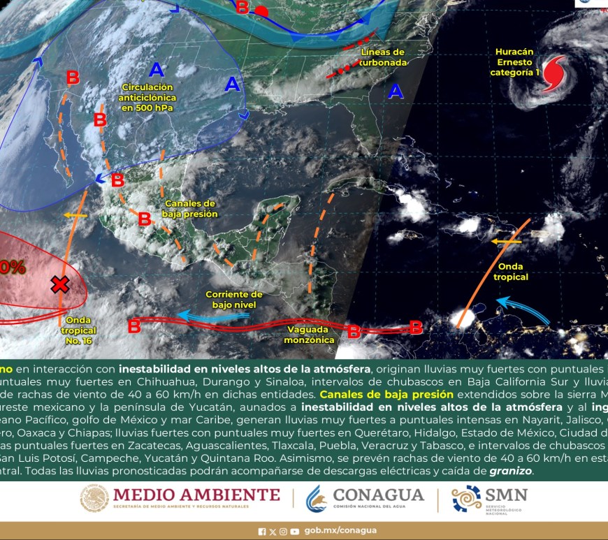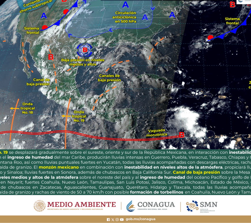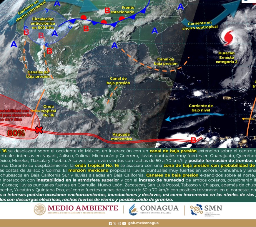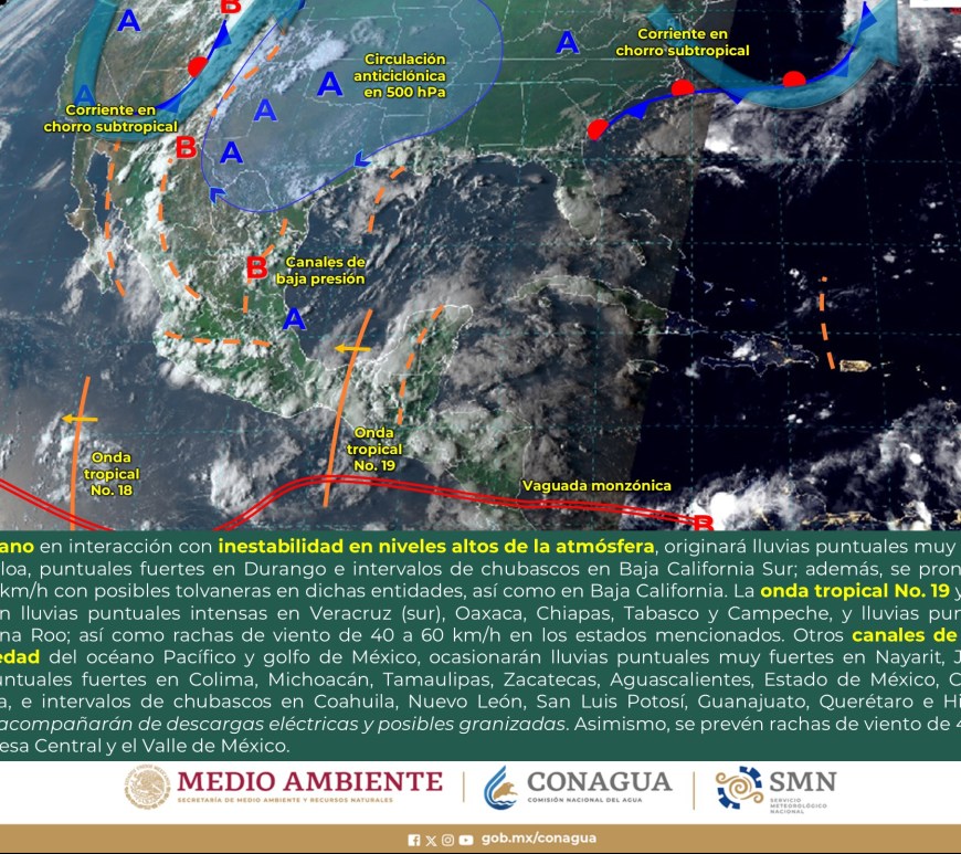 Por la mañana, cielo con nubosidad dispersa y ambiente fresco, templado en el norte de Chihuahua, Coahuila y Nuevo León, y frío con bancos de niebla en zonas serranas de Chihuahua, Durango y Zacatecas. Durante la tarde, ambiente cálido, y caluroso en zonas de Coahuila y Nuevo León. Cielo nublado con lluvias puntuales fuertes en Chihuahua, Coahuila, Nuevo León y Durango, dichas lluvias podrían reducir la visibilidad, … Continúa leyendo Pronóstico Meteorológico 28 de Agosto