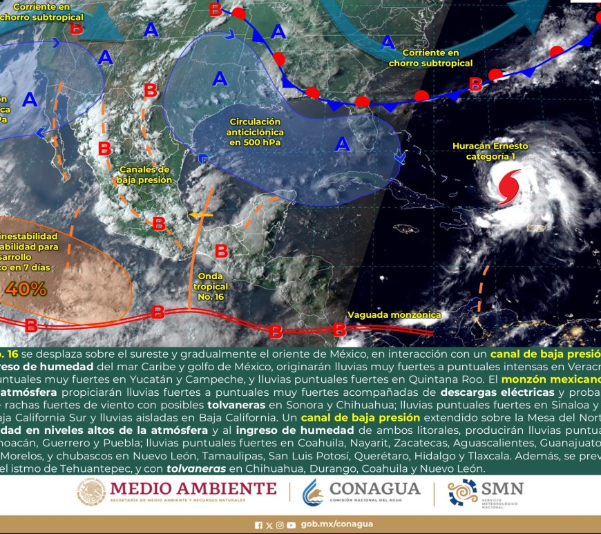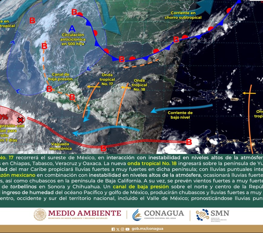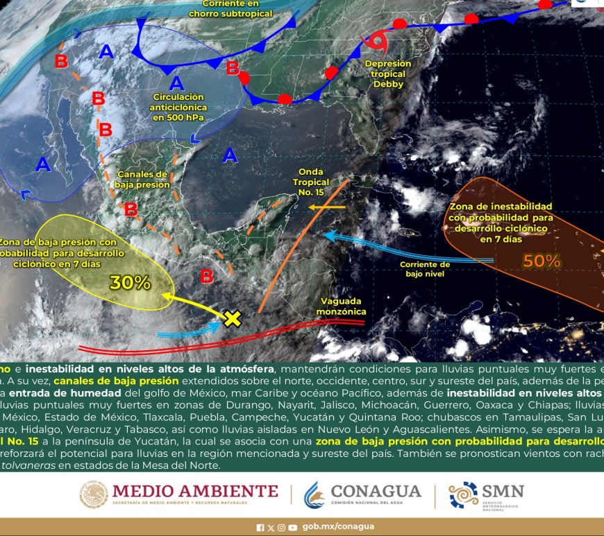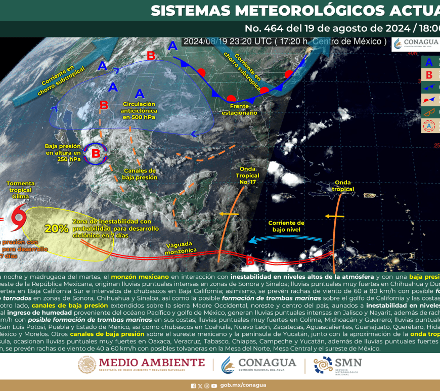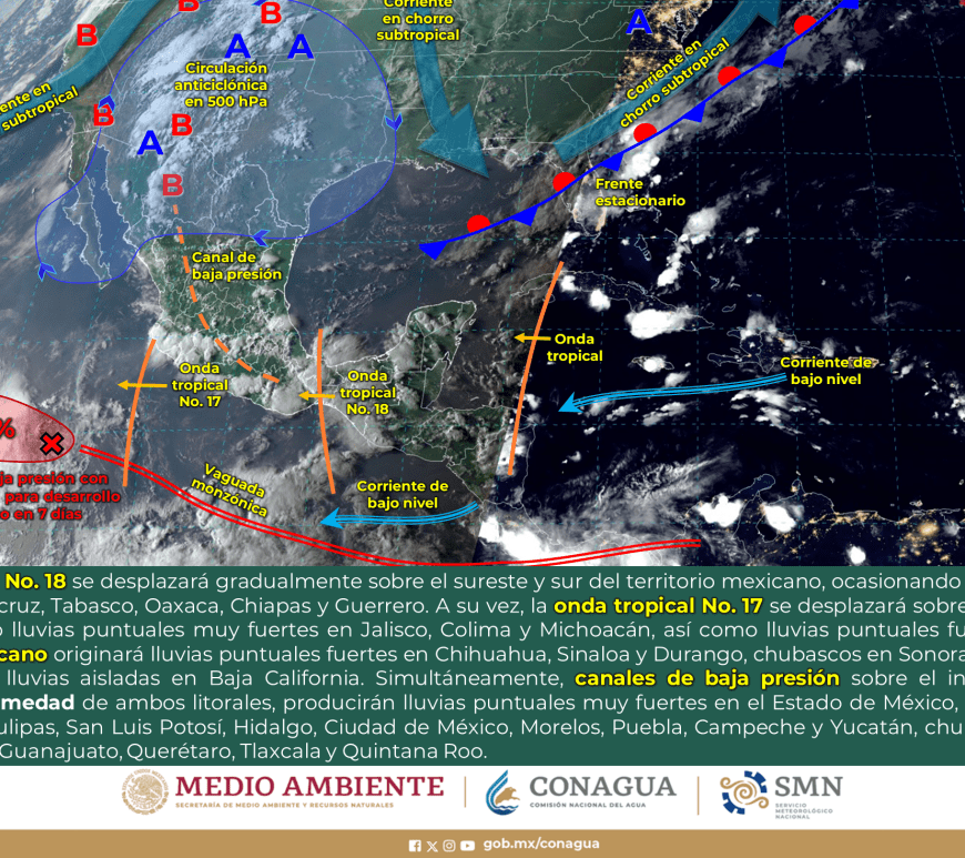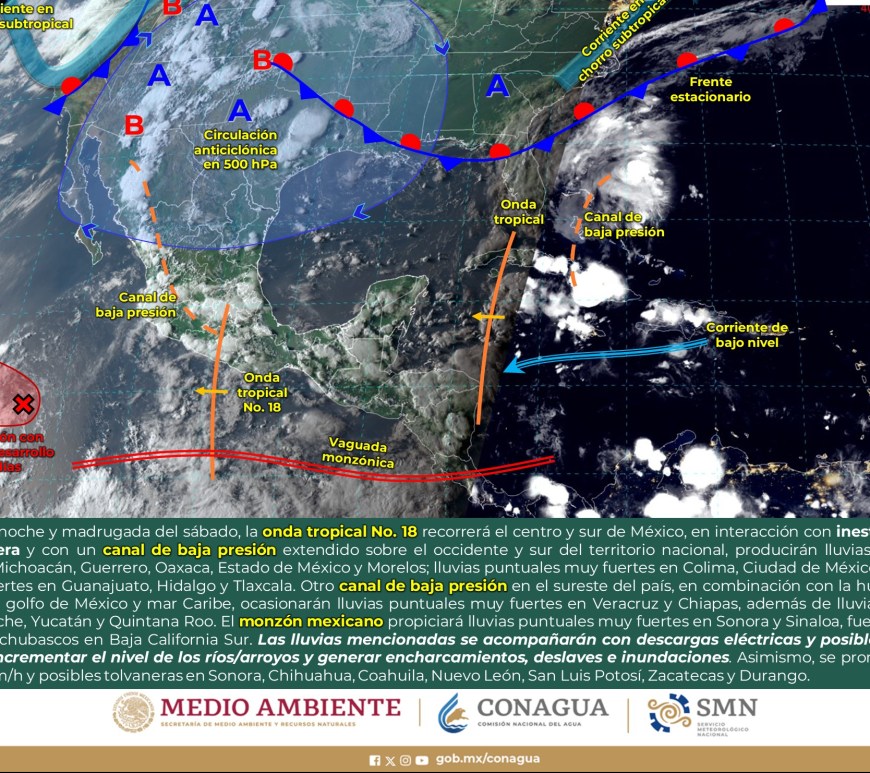 Por la mañana, cielo con nubosidad dispersa y ambiente fresco, templado en el norte de Chihuahua, Coahuila y Nuevo León, y frío con bancos de niebla en zonas serranas de Chihuahua, Durango y Zacatecas. Durante la tarde, ambiente cálido, y caluroso en zonas de Coahuila y Nuevo León. Cielo nublado con lluvias puntuales fuertes en Chihuahua, Coahuila, Nuevo León y Durango, dichas lluvias podrían reducir la visibilidad, … Continúa leyendo Pronóstico Meteorológico 28 de Agosto